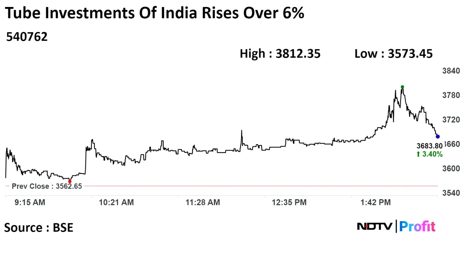 Shares of Tube Investments of India Ltd. rose over 6% on Monday on hope the new mandate from the government for air-conditioned cabins for trucks may increase its sales prospects.