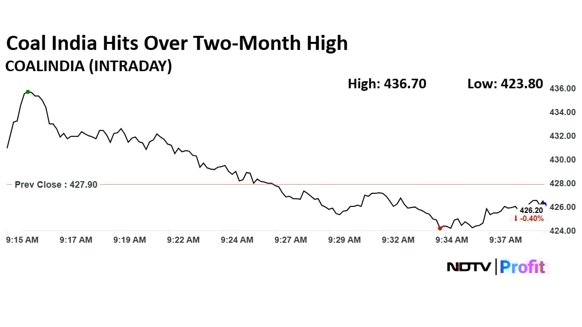 ONGC Shares Eases After Hitting One-Month Highs On Oil Developments In VenezuelaThe shares of Coal India rose over 2% and hit two-month high before it pared gains and fell as much as 0.65% to Rs 425.10. This comes as Bharat Coking Coal Ltd., a wholly owned subsidiary of Coal India Ltd., is set to launch the first mainboard IPO of 2026 with a price band of Rs 21 to Rs 23 per equity share.