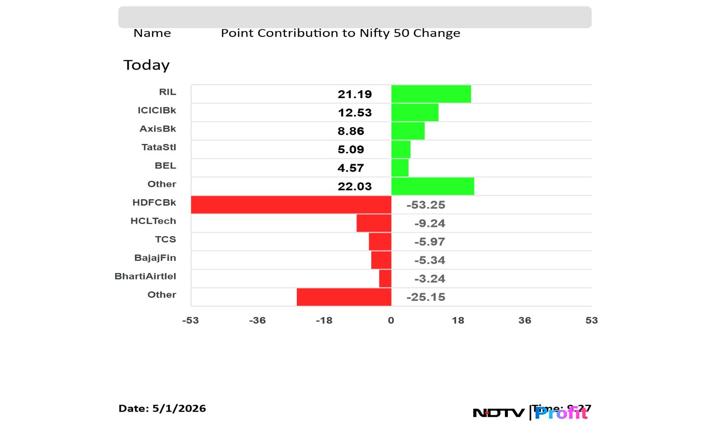 HDFC Bank, HCLTech, TCS, Bajaj Finance, Bharti Airtel weighed on the Nifty 50 index.