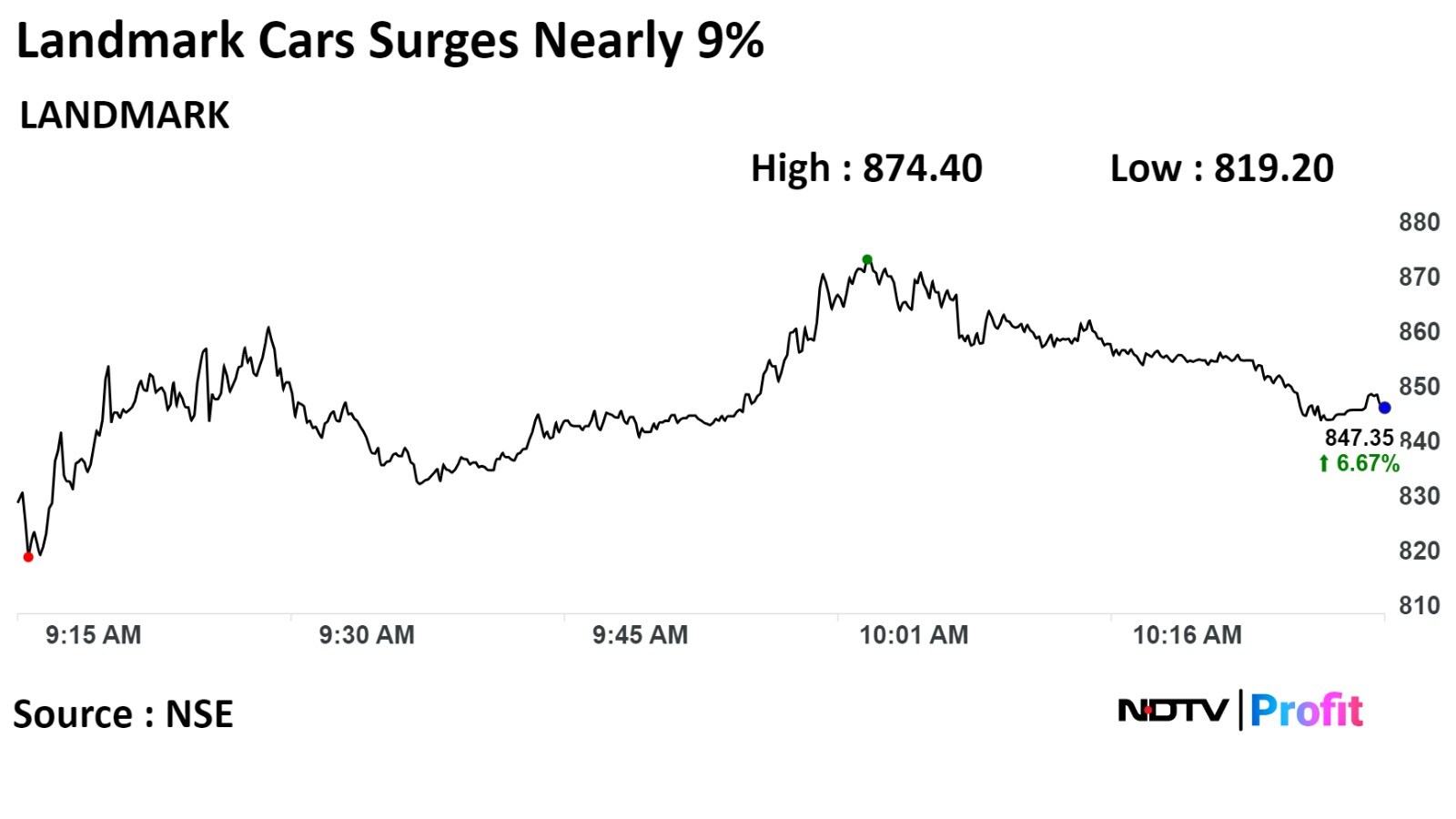 Total traded volume so far in the day stood at 5.9 times its 30-day average. The relative strength index was at 83.76, indicating that the stock may be overbought.