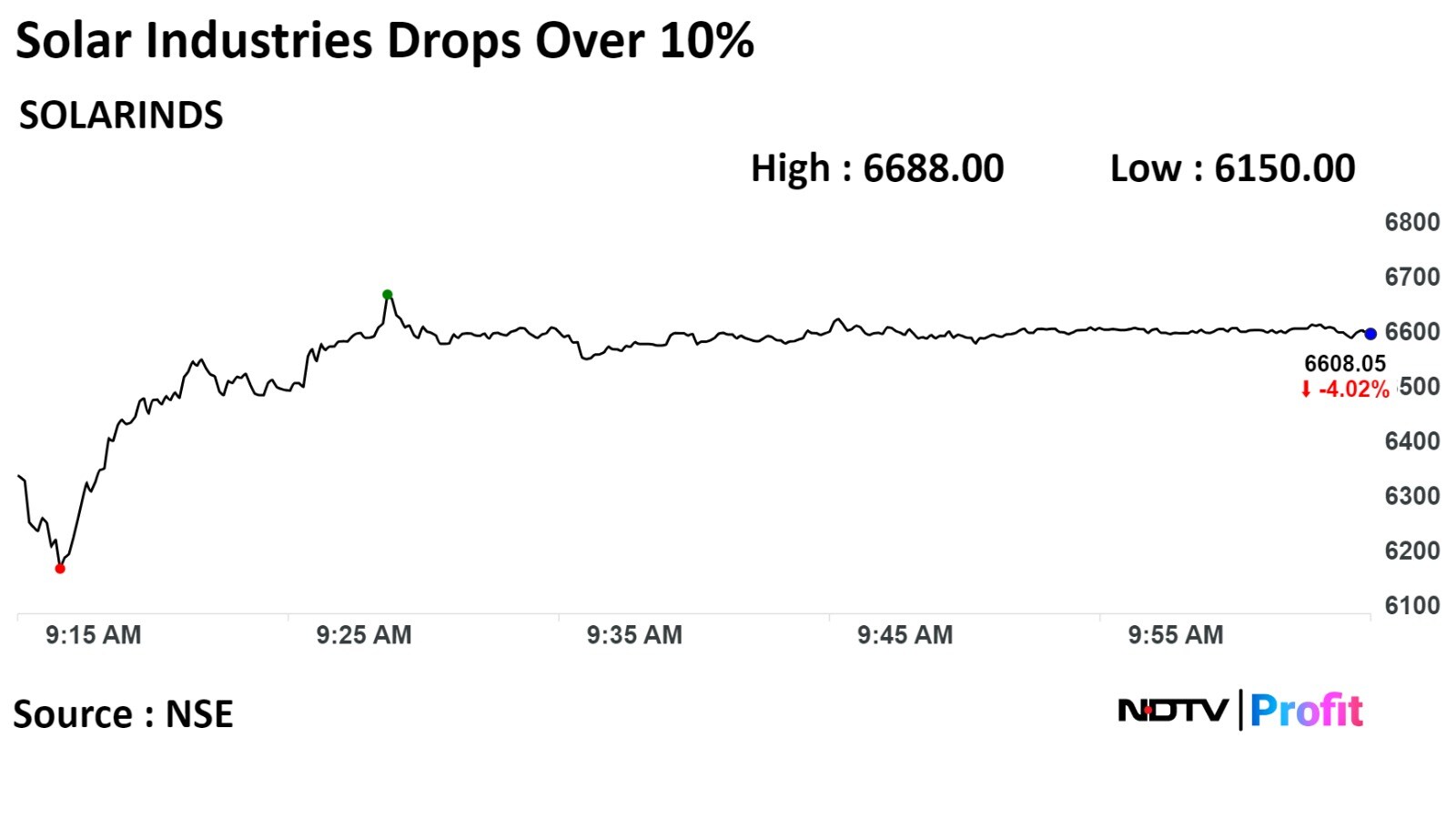 The scrip plunged 10.67% to Rs 6,150 apiece, the lowest level since Dec 1. It pared losses to trade 2.78% lower at Rs 191.40 apiece, as of 10:22 a.m. This compares to a 0.14% decline in the NSE Nifty 50 Index.