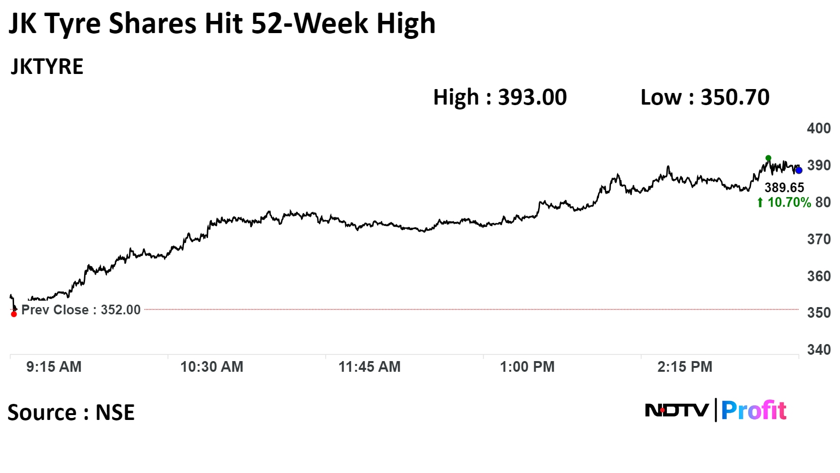 Shares of JK Tyre & Industries Ltd rose to hit a 52-week high after an extraordinary general meeting held by on Monday approved raising up to Rs 500 crore by way of qualified institutions placement.