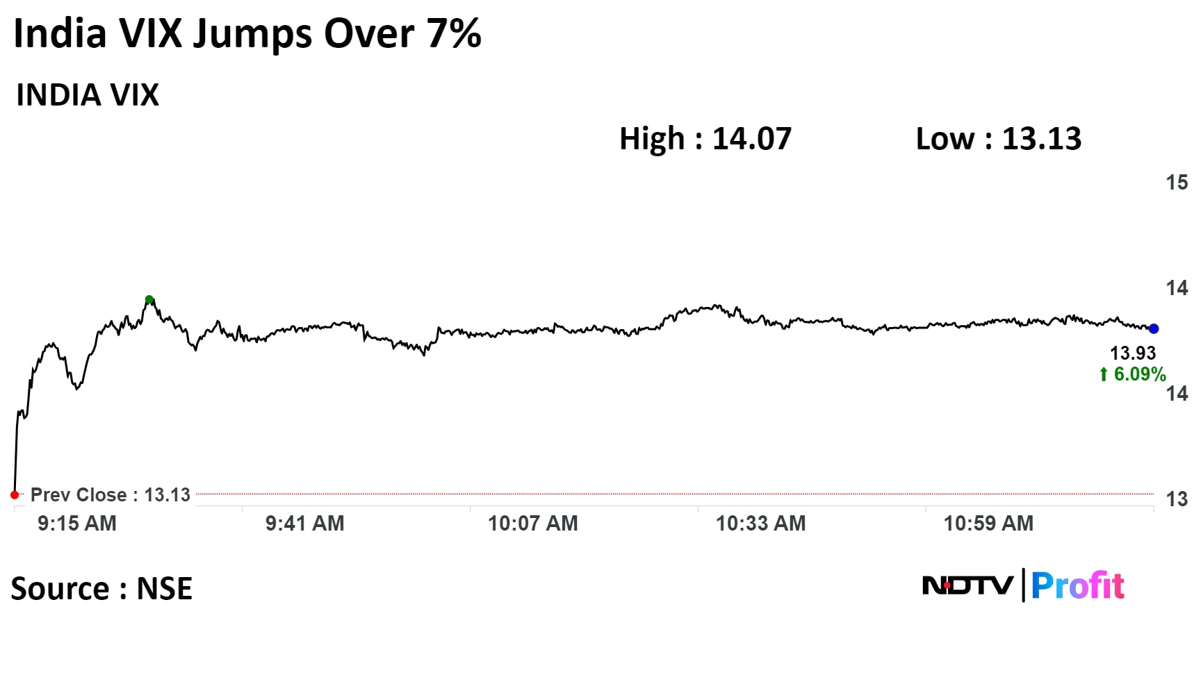 India VIX or the volatility index jumped as much 7.22% today to hit its highest level since December 6.