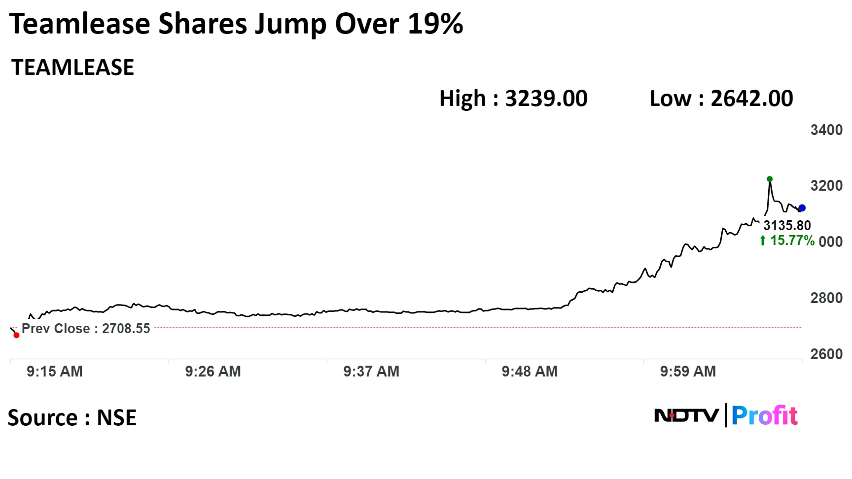 Teamlease Services up 9.6% at Rs 2968.55