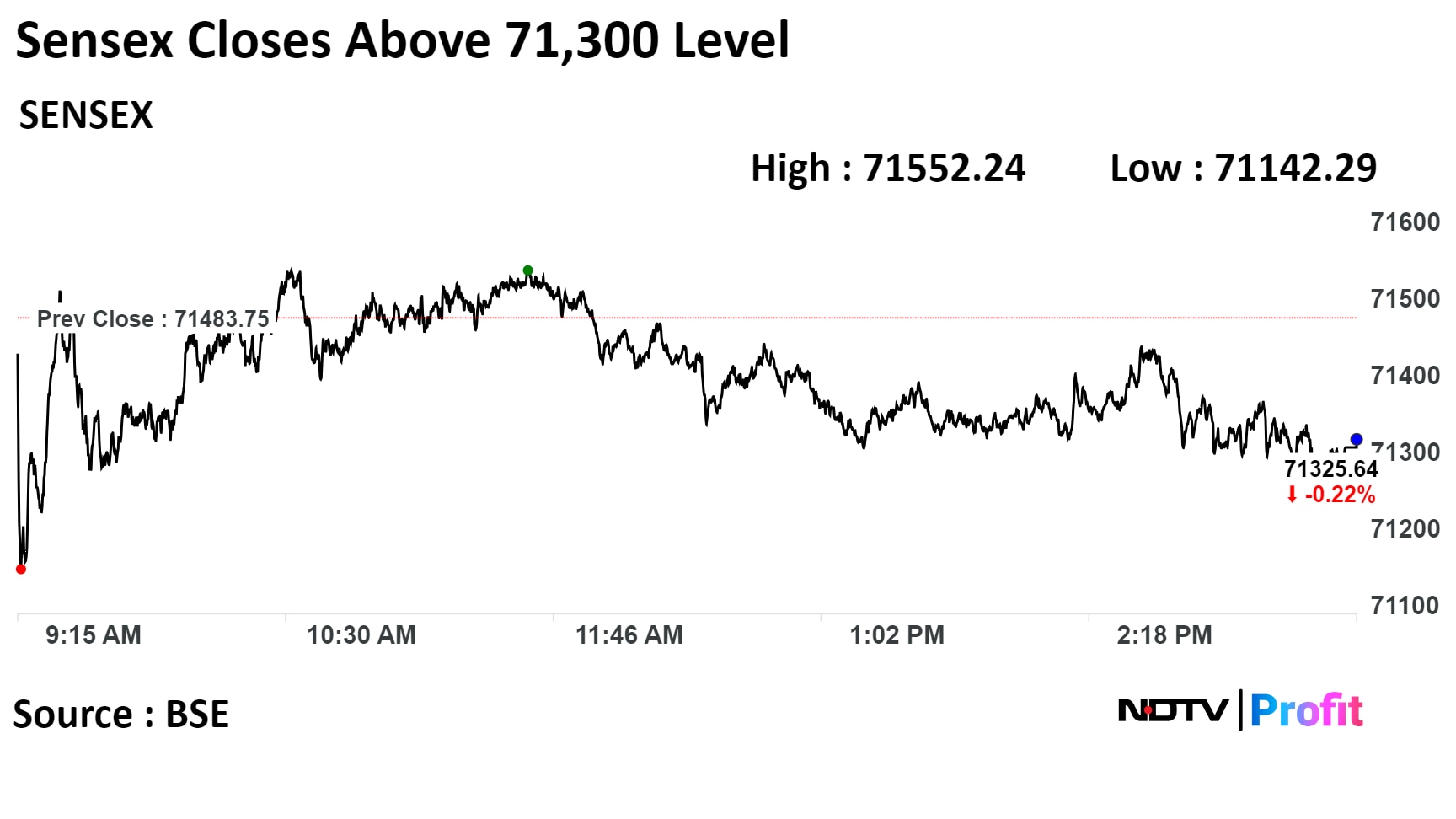 At pre-open, the S&P BSE Sensex Index was down 46.40 points, or 0.07%, at 71,437.35 while the NSE Nifty 50 was down 21.85 points or 0.10% at 21,434.80.