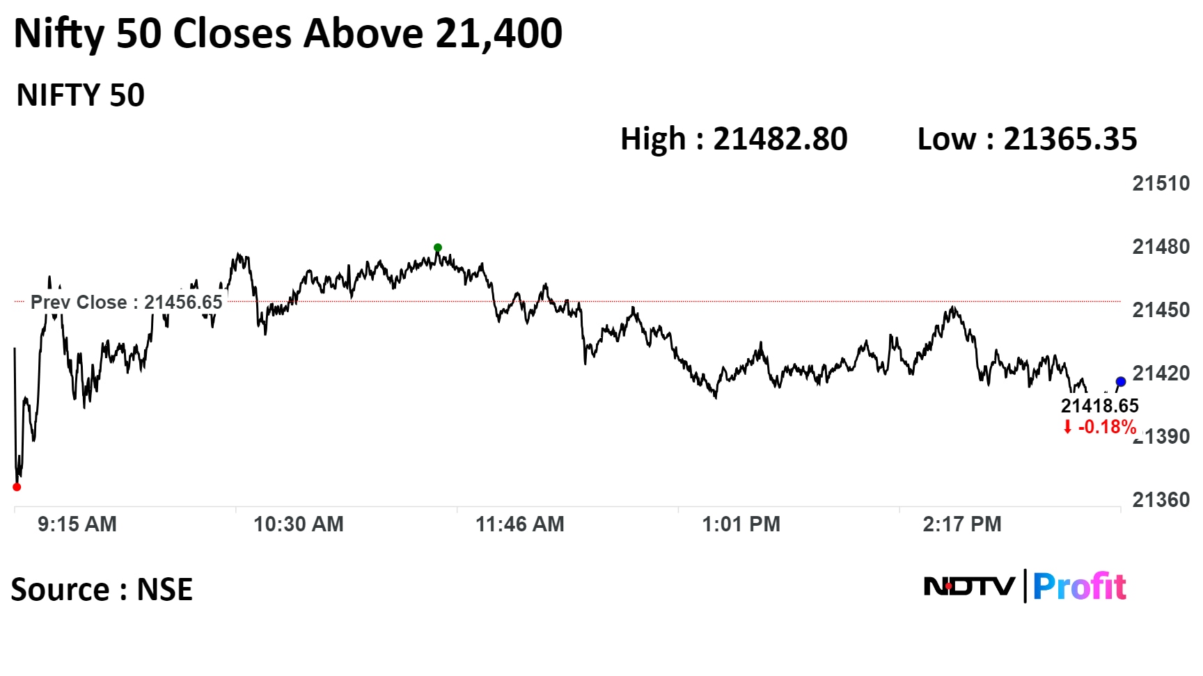 The Nifty 50 index closed 38 points or 0.18% lower at 21,418.65 while the Sensex shed 168.66 points or 0.24% to close at 71,315.09.