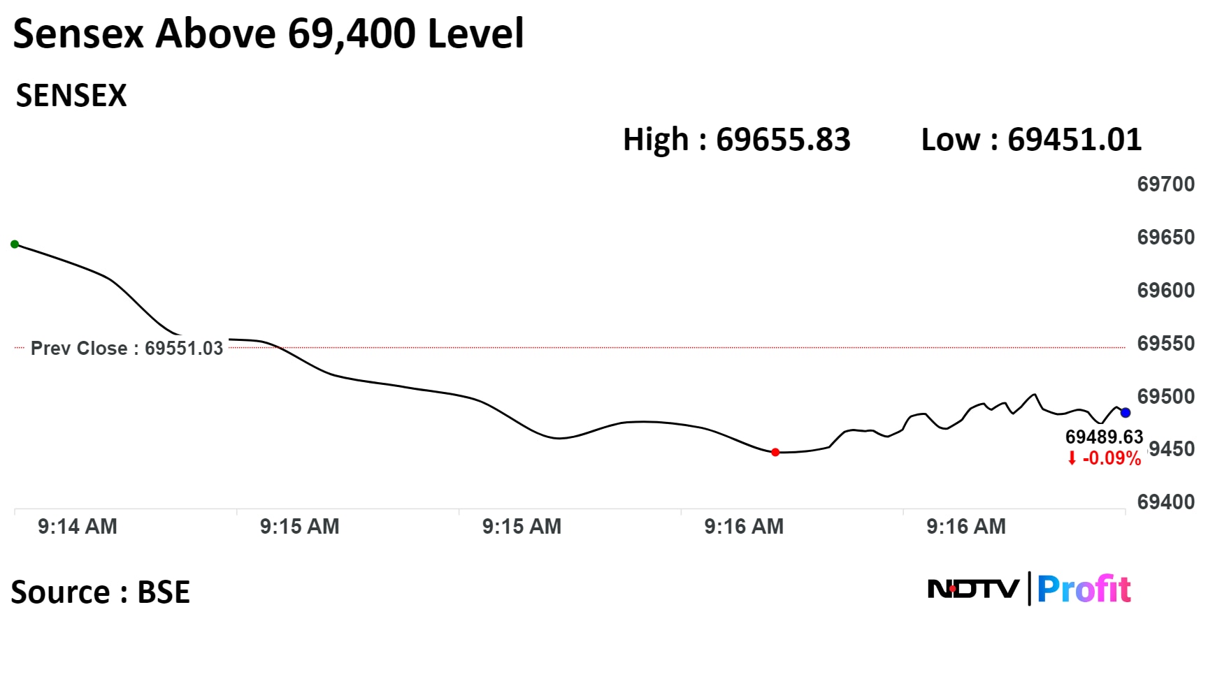 At pre-open, the S&P BSE Sensex Index was up 97.53 points, or 0.14%, at 69,648.56, while the NSE Nifty 50 was 23.35 points or 0.11% higher at 20,929.75.