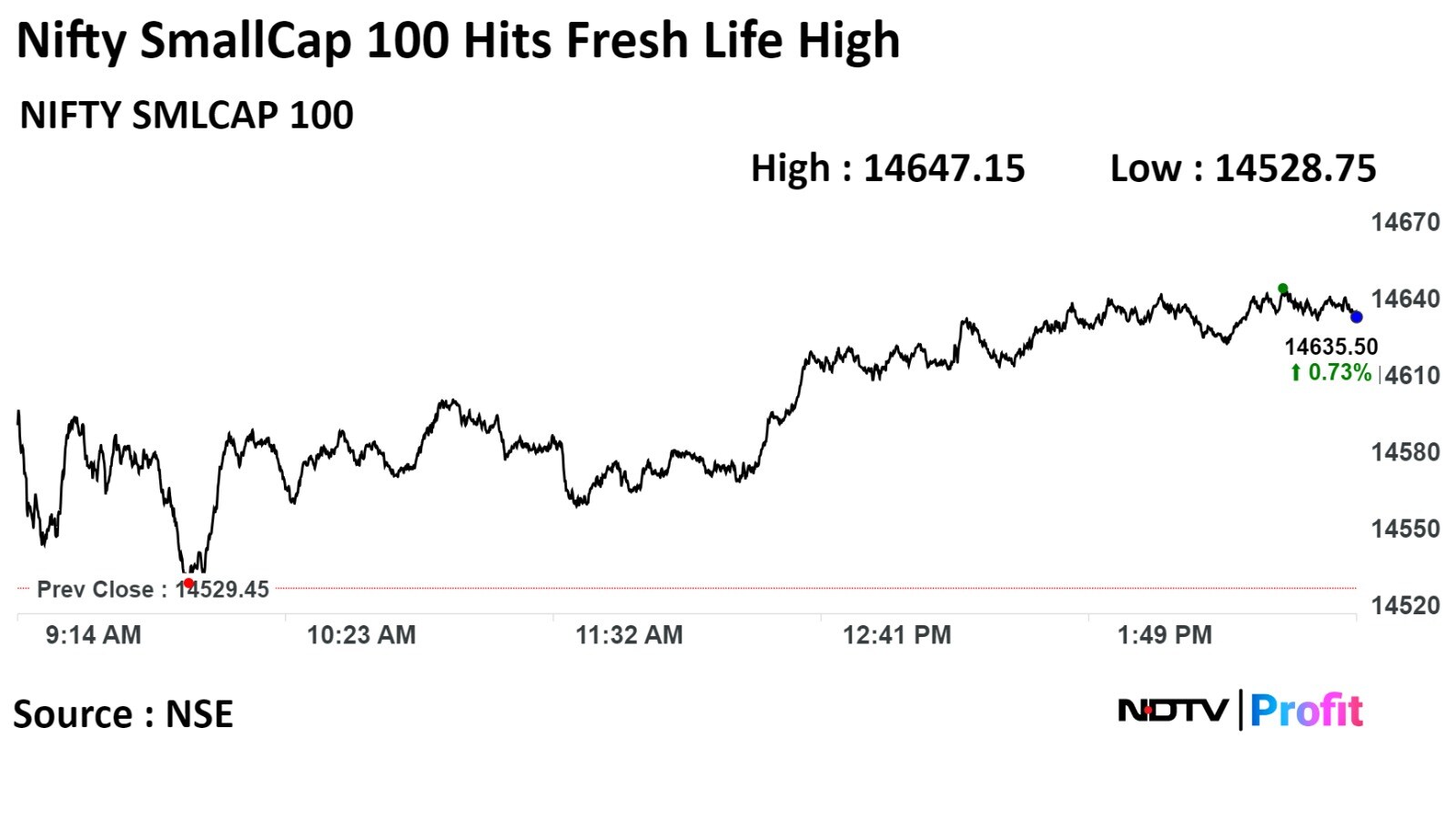 SmallCap 100 hits fresh life high of 14,647.15, extends gains for third session.