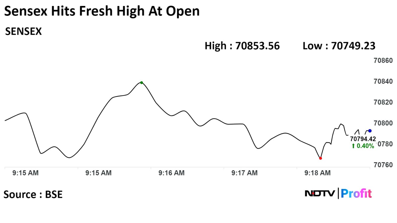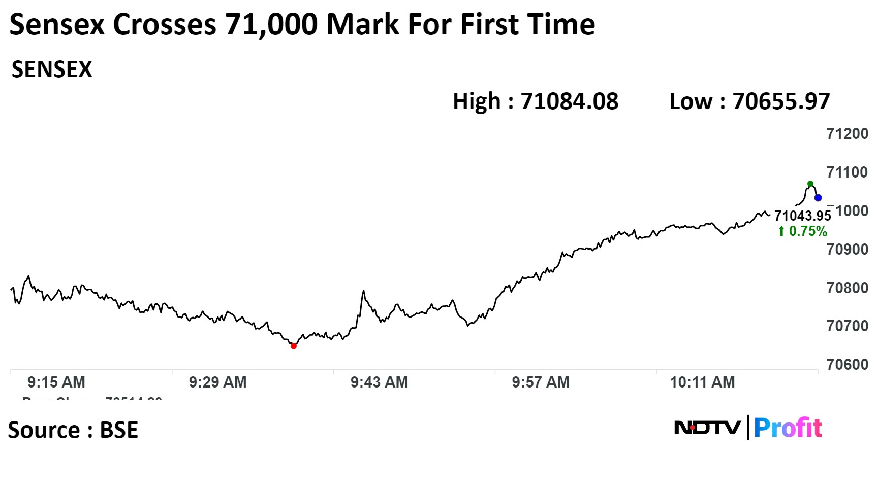 The Nifty 50 hit another record high at 21,355.65, and the Sensex marked 71,084.08 as its lifetime high.