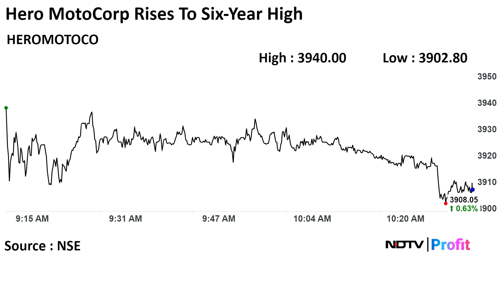 Shares of the Hero MotoCorp Ltd. rose to a six-year high on Friday after the company said to the exchanges, it has acquired additional 3% stake in the Ather Energy Private Ltd.