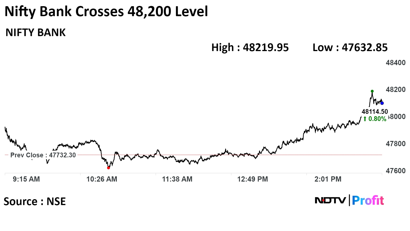 The Nifty Bank also for the first time breached 48,200 level for the first time on Friday during the last leg of the trade. The index settled 0.86% or 411.25 at 48,143.55