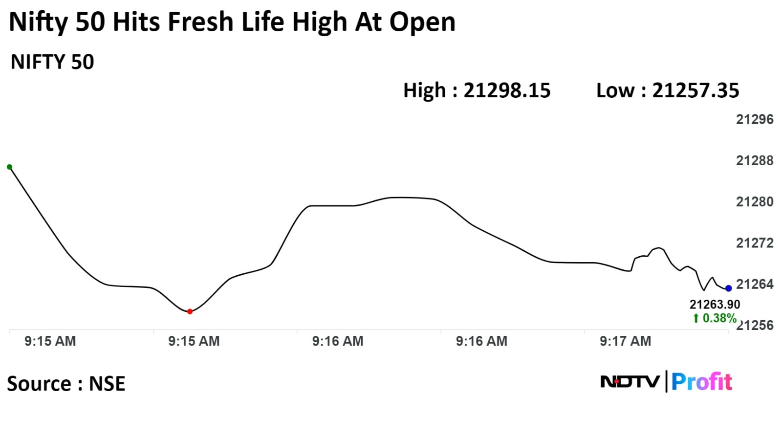 The Nifty and the Sensex also hit an intraday record high of 21,210.90 and 70,602.89 points, respectively.