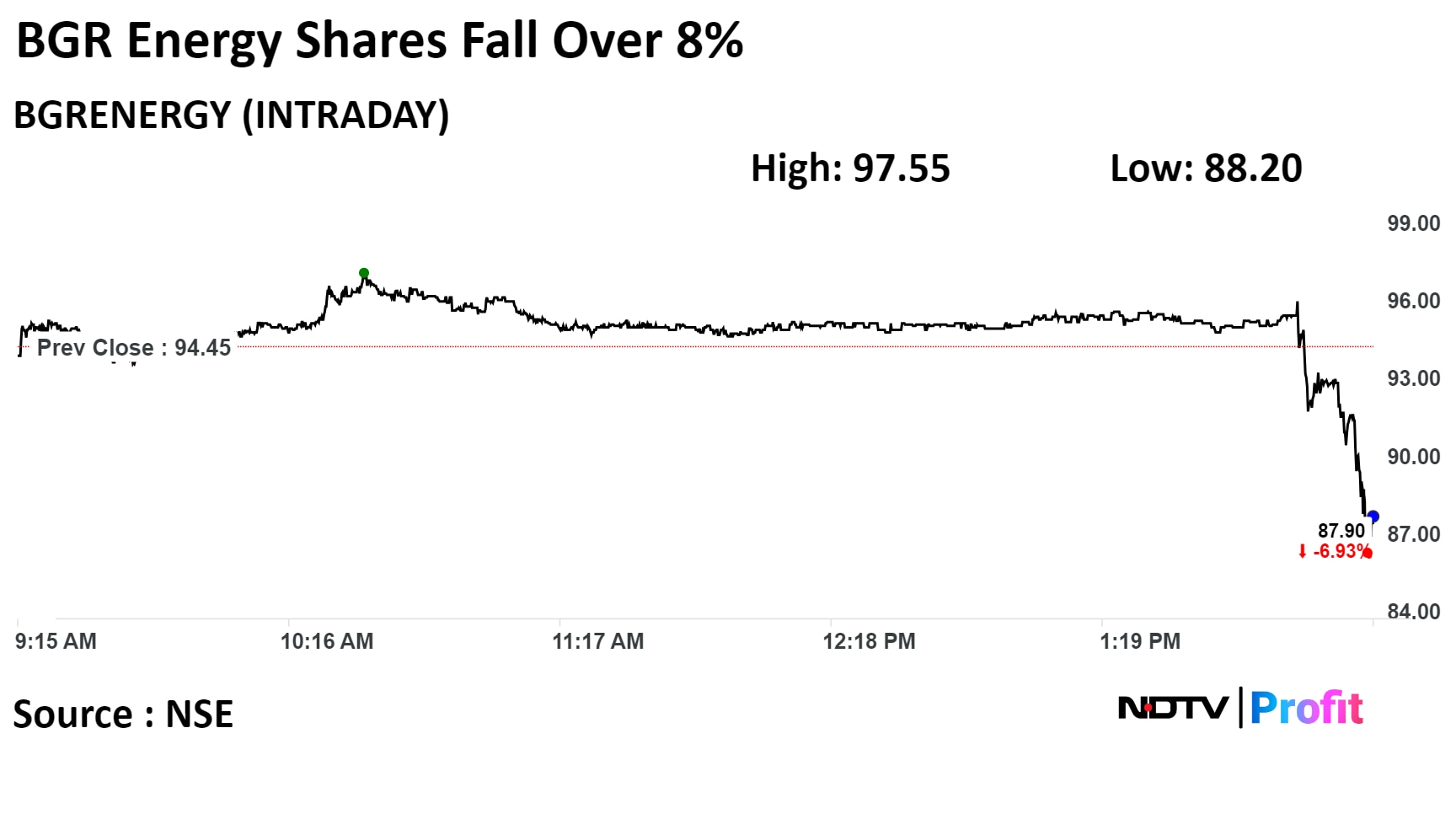 The scrip fell as much as 8.42% to Rs 86.50 apiece, the lowest level since December 8, 2023. It pared losses to trade 8.36% lower at Rs 86.55 apiece, as of 2:24 p.m. This compares to a 0.7% decline in the NSE Nifty 50 Index.