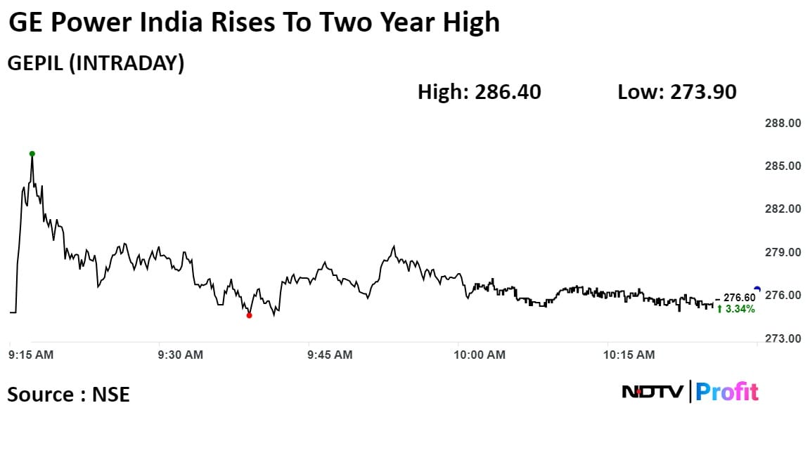 The scrip rose as much as 7% to 286.40 apiece, highest in over two years. This is the highest level since Dec. 13, 2021. It pared gains to trade 3.01% higher at Rs 275.70 apiece, as of 10:27 a.m. This compares to a 0.04 advance in the NSE Nifty 50 Index.