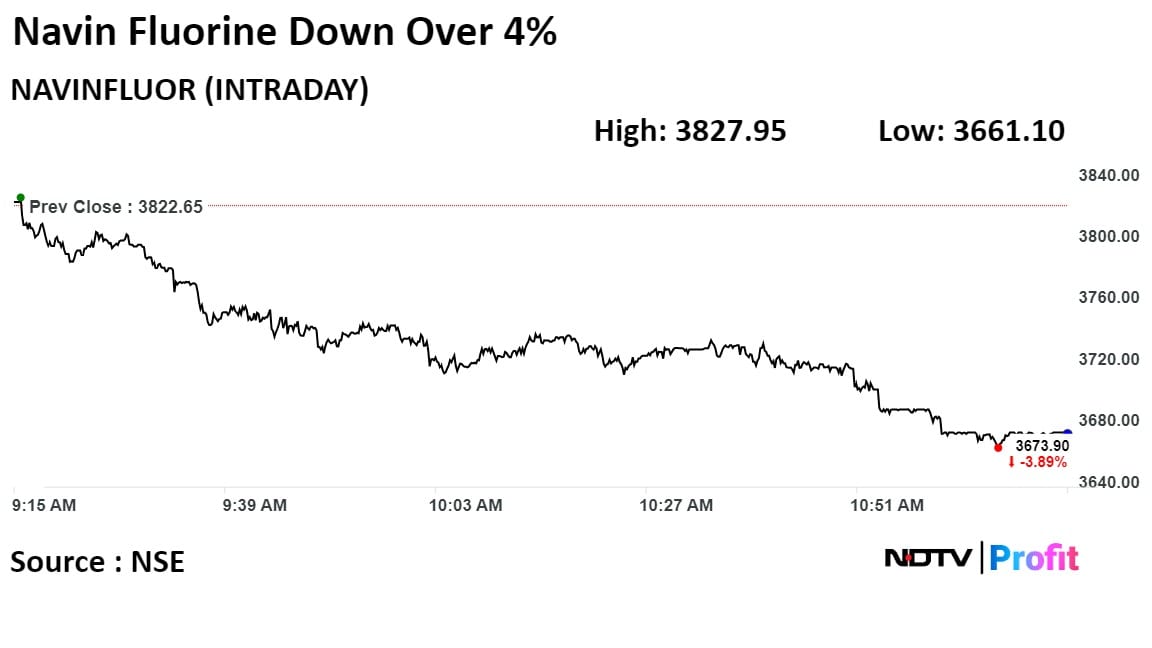 The scrip fell as much as 4.23% to 3,661.10 apiece, the lowest level since Nov. 23, 2023. It pared losses to trade 3.91% lower at Rs 3,673 apiece, as of 11:13 a.m. This compares to a 0.48% decline in the NSE Nifty 50 Index.