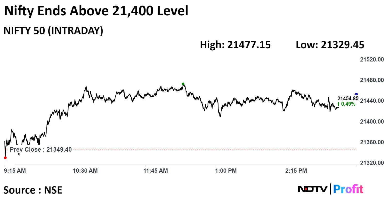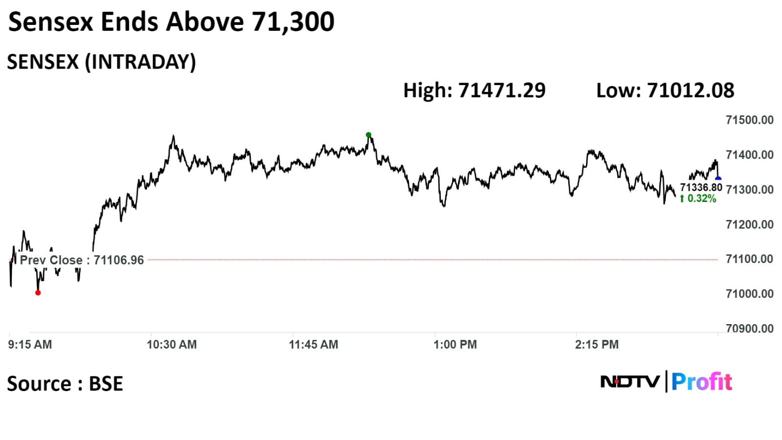 The NSE Nifty 50 ended 0.43% or 91.95 points higher at 21,441.35, while the S&P BSE Sensex ended 0.32% or 229.84 points higher at 71,336.80.