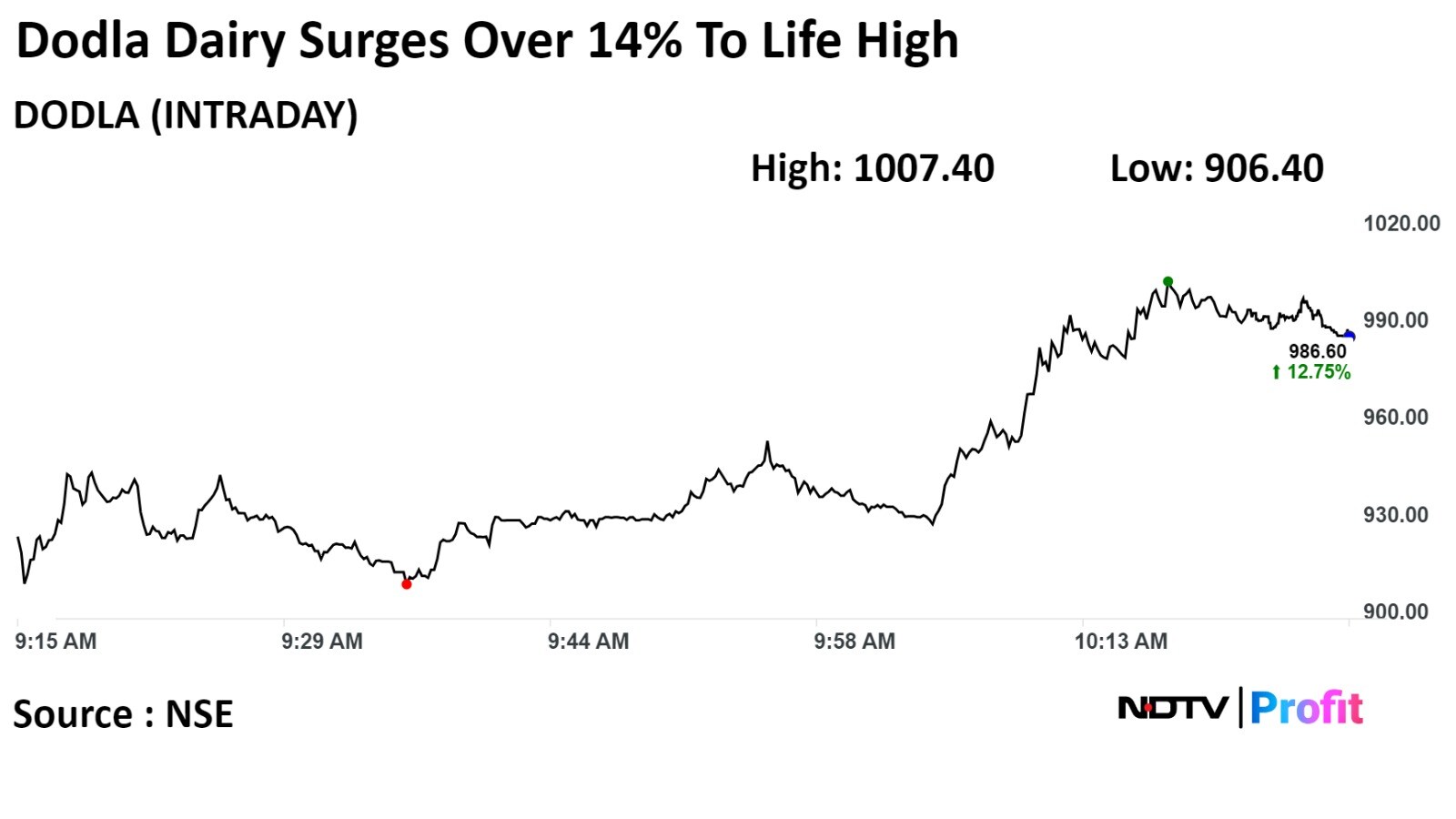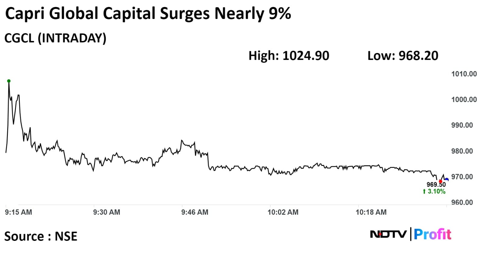 Total traded volume so far in the day stood at 3.1 times its 30-day average. The relative strength index was at 73, implying the stock is overbought.