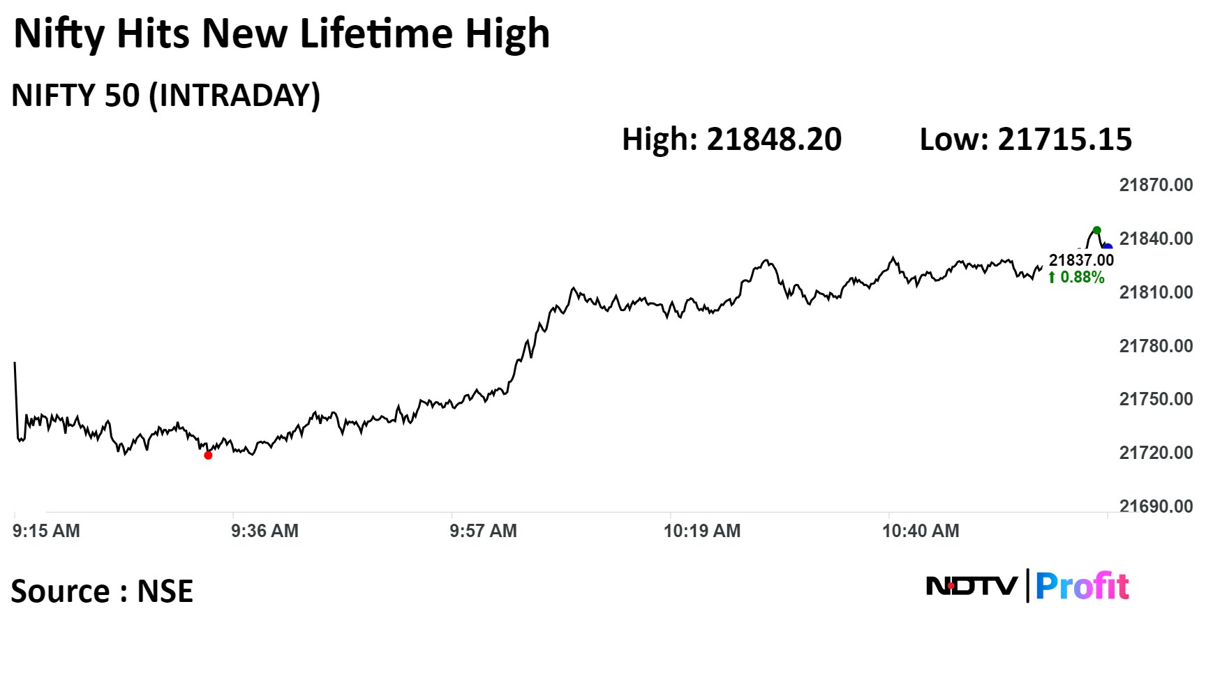 At pre-open, the S&P BSE Sensex Index was up 426.89 points, or 0.60%, at 72,148.07 while the NSE Nifty 50 was 126.3 points or 0.58% higher at 21,773.55.