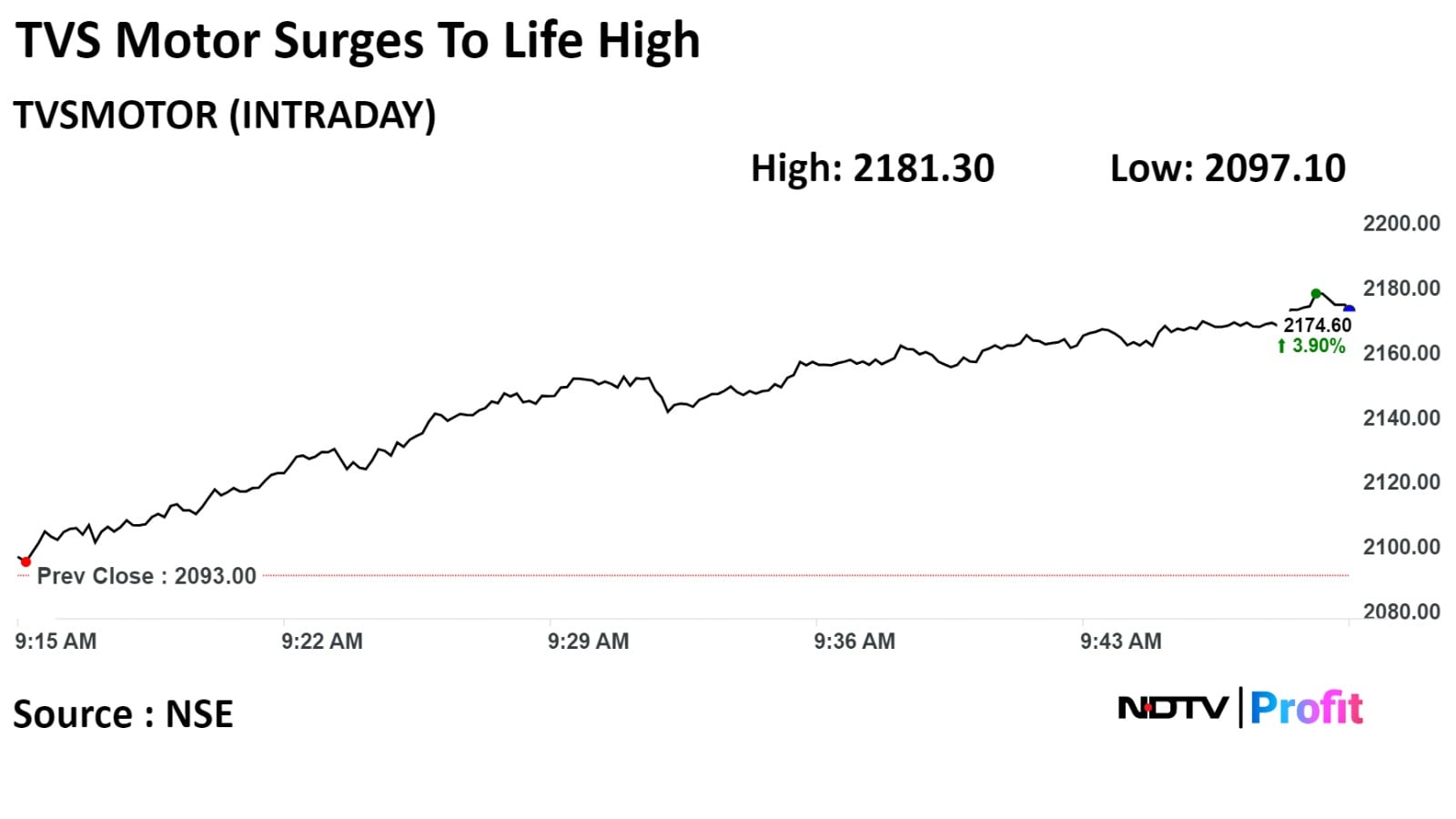 The scrip rose as much as 13.85% to Rs 1,010.00 apiece, the highest level since Aug 13, 2021. It was trading 12.79% higher at Rs 1,000 apiece, as of 11:08 a.m. This compares to a 0.60% advance in the NSE Nifty 50 Index.