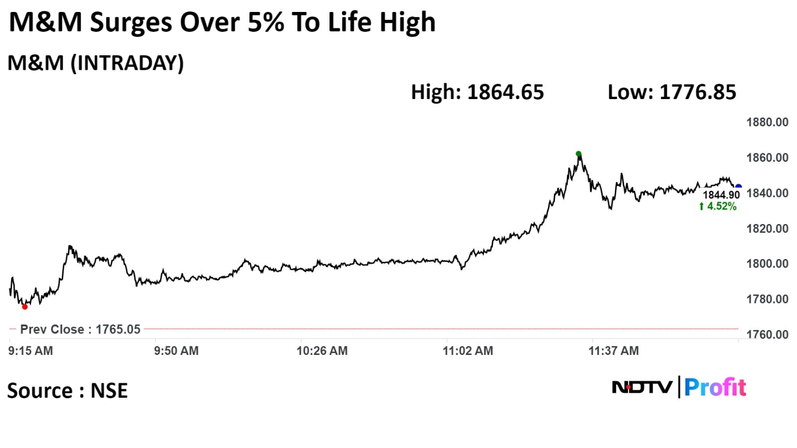 The scrip rose as much as 9.7% to Rs 888 apiece, the highest level since February 7. It pared gains to trade 8.19% higher at Rs 876.60 apiece, as of 10:05 a.m. This compares to a 0.43% advance in the NSE Nifty 50 Index.