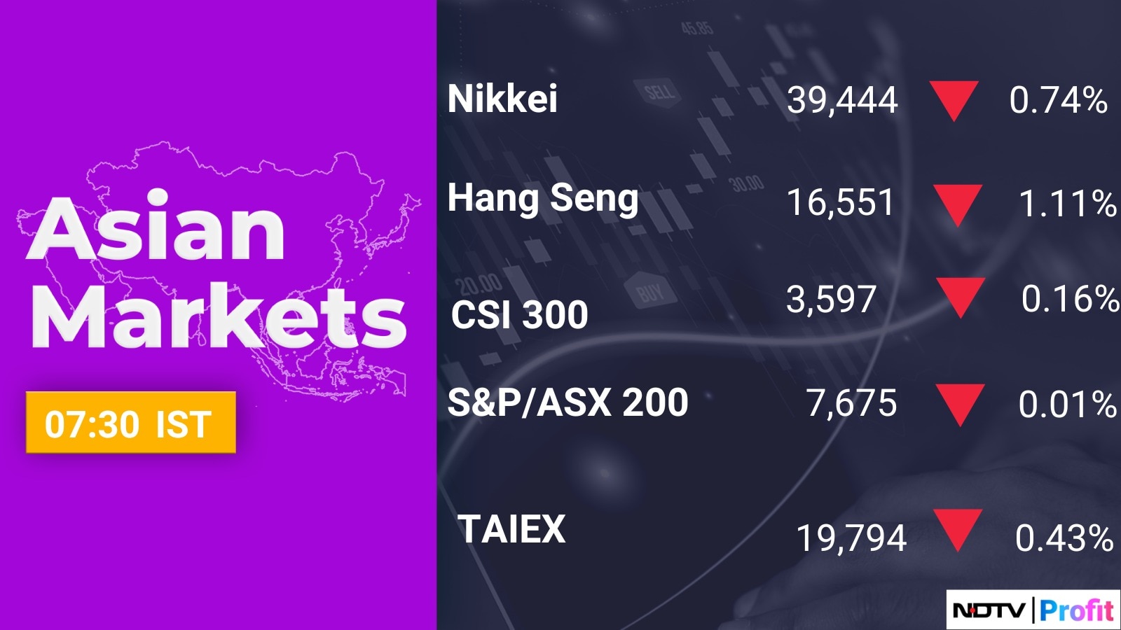 Shares in the Asian-Pacific region were under pressure as investors awaited cues from various central bank decisions over the week, starting with the Bank of Japan. Hong Kong's Hang Seng fell over 1%, while Australia's S&P ASX 200 traded flat.