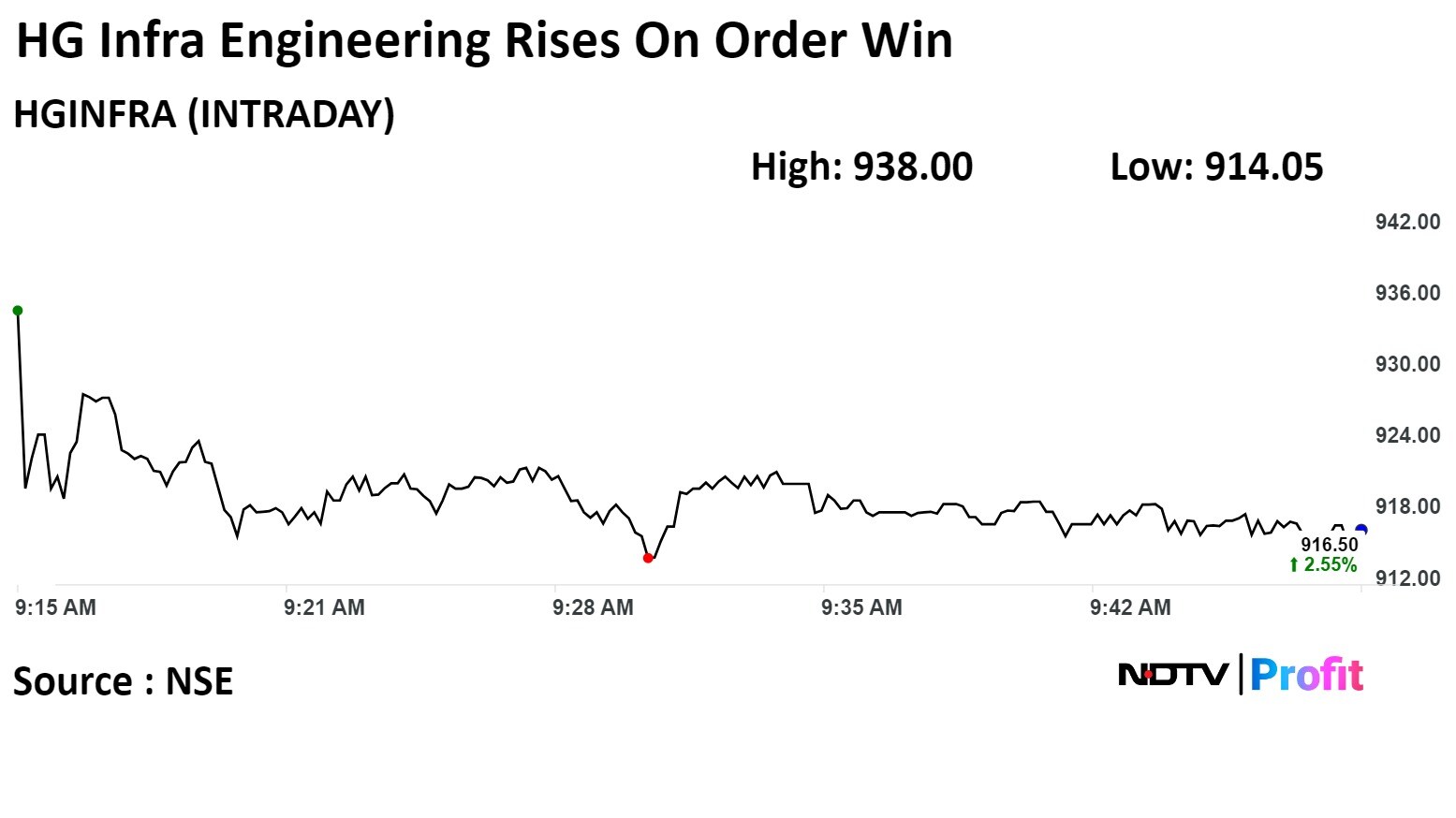 Shares of HG Infra Engineering Ltd. rose nearly 5% on Tuesday after it secured four orders worth total Rs 1,026 from Jodhpur Vidyut Vitran Nigam.