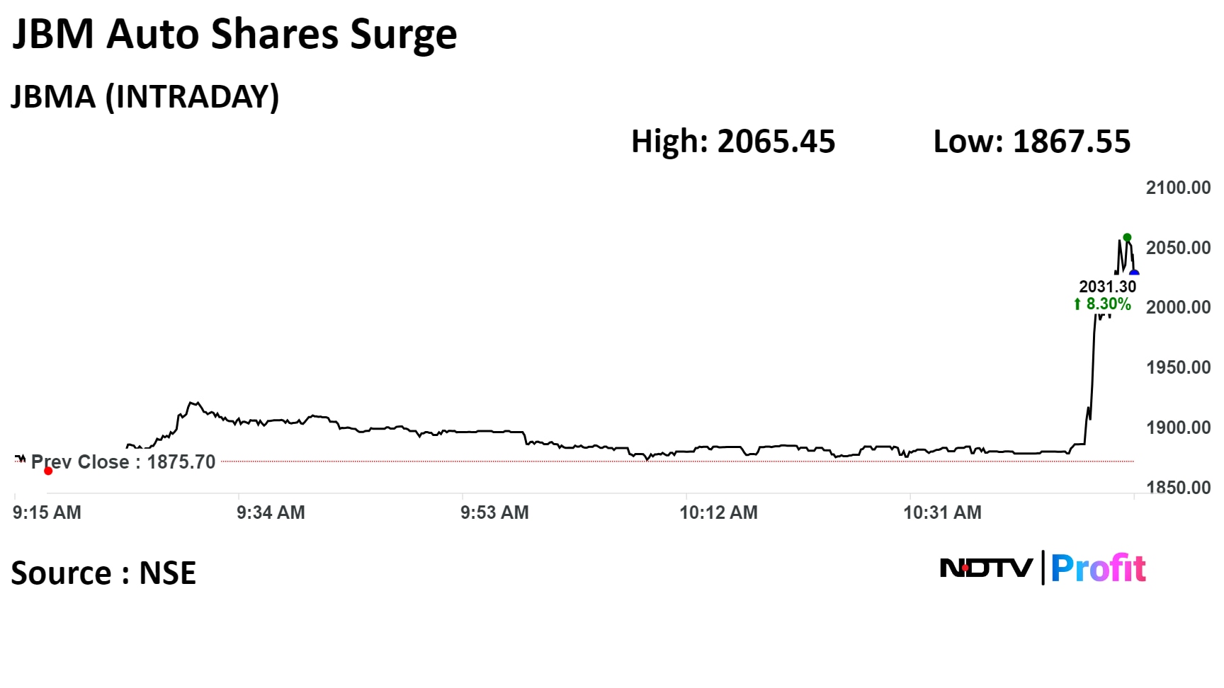 Shares of JBM Auto surged after it got a contract worth Rs 7,500 crore for procurement, supply, operation of 1,390 electric buses.