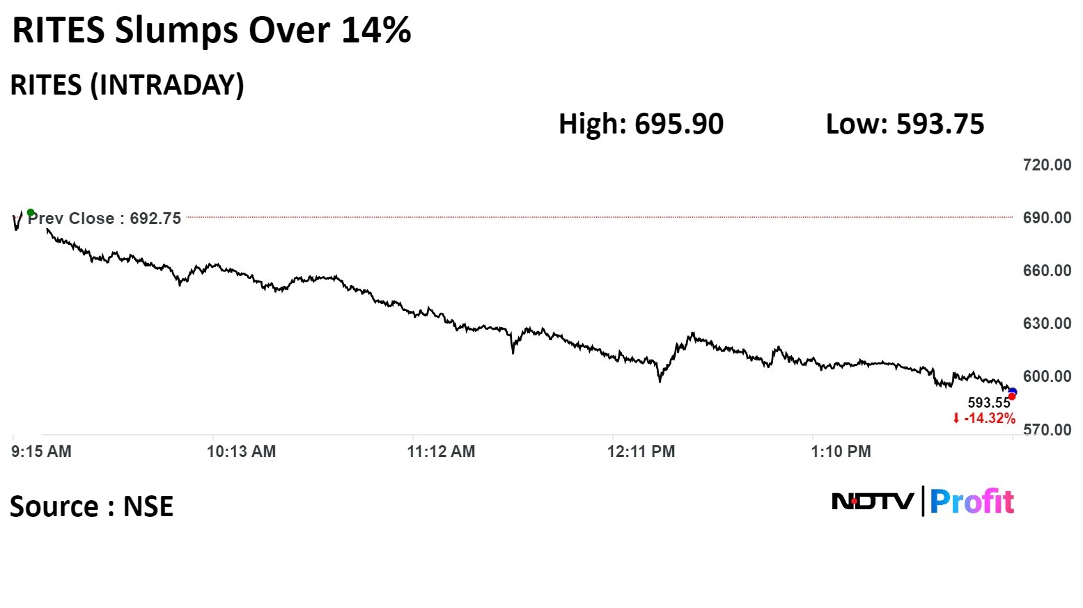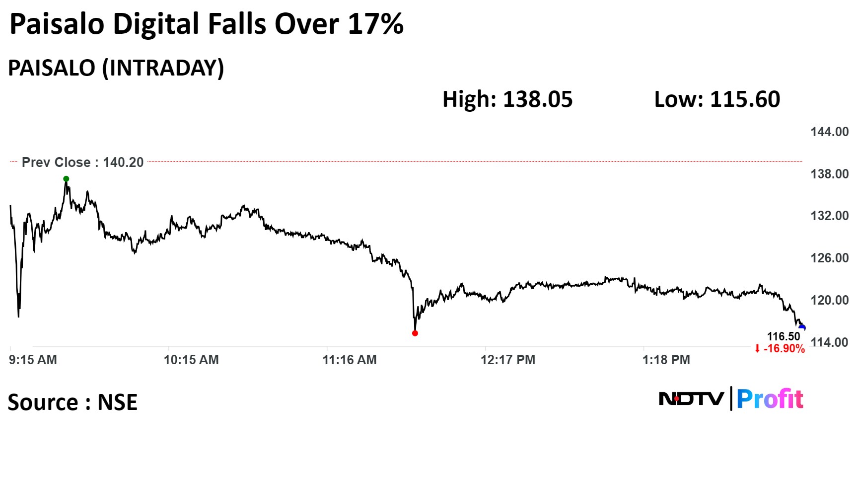 The scrip fell as much as 5% to 829.45 apiece, to be locked in the lower circuit. This compares to a 0.38% decline in the NSE Nifty 50 Index as of 11:10 a.m. The shares have been locked in lower circuit three times this week, while the circuit was increased to 10% on Monday and Tuesday. It is locked at 5% on Wednesday.