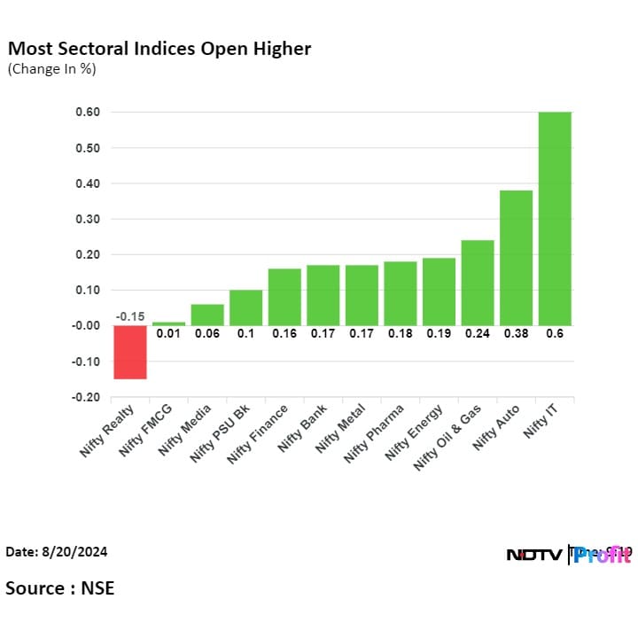 At pre-open, the Nifty was at 24648.90, up by 0.44% or 107.75 points and the Sensex rose 0.36% or 285.89 points to 80722.73.