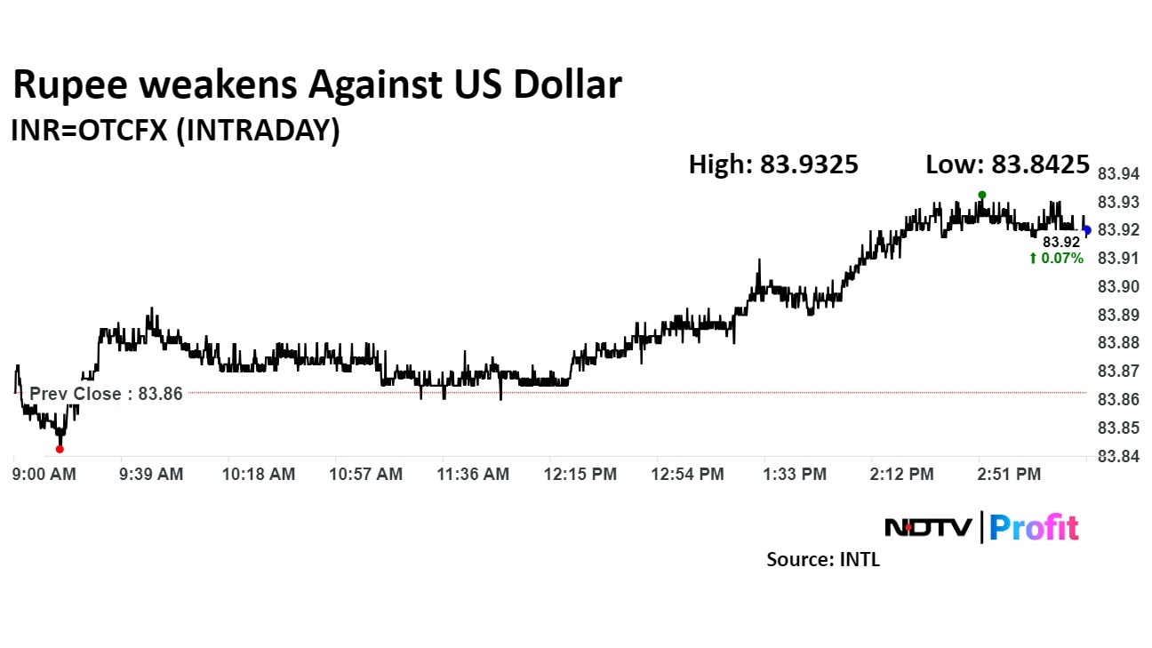 Rupee opened flat at 83.87 against the US dollar.