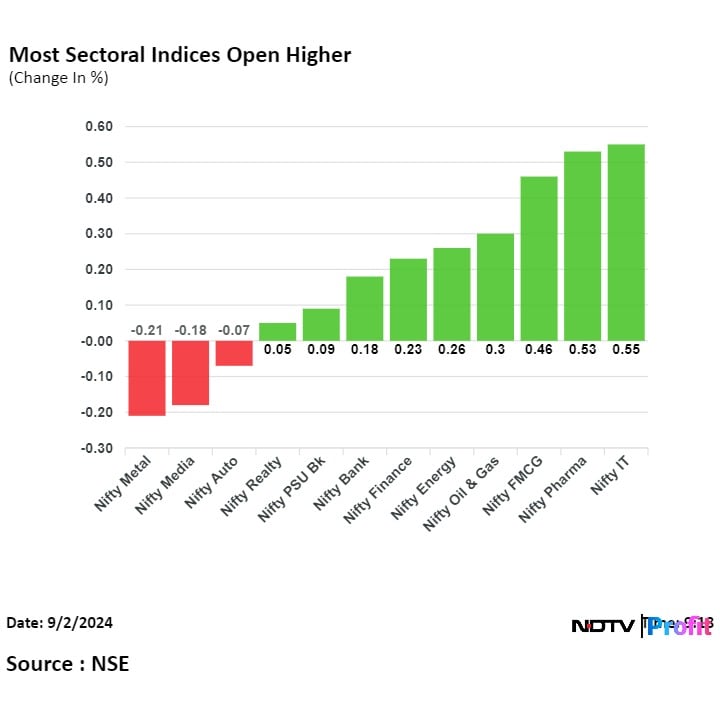 At pre-open, the Nifty was at 25327.45, up 0.36% or 91.55 points and the Sensex was at 82732.95, up by 0.45% or 367.18 points.