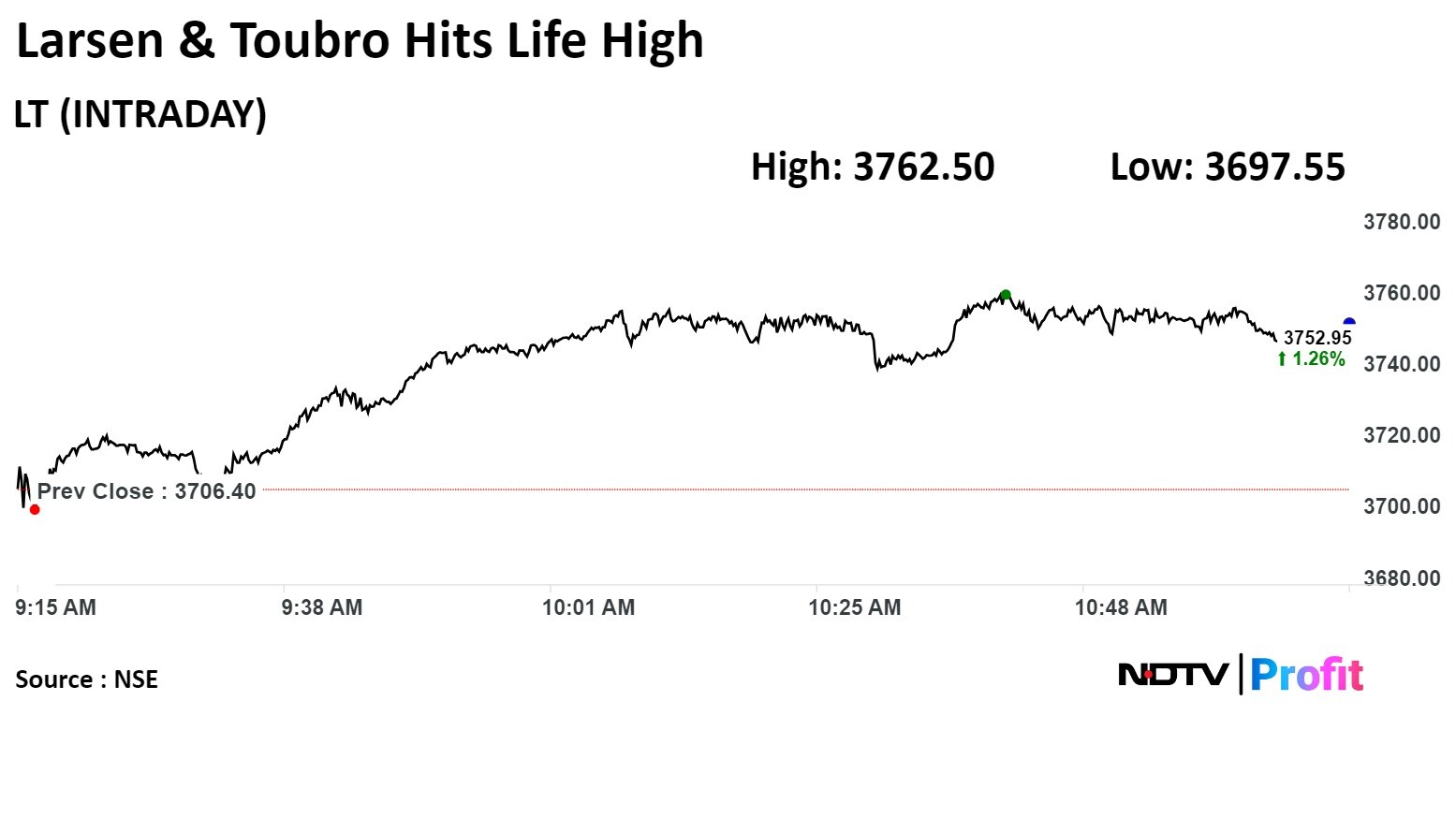 The scrip rose as much as 1.66% to Rs 3,768.00 apiece, the highest level since its listing on Jun 23, 2004. It was trading 1.64% higher at Rs 3,767.00 apiece, as of 11:29 a.m. This compares to a 1.12% advance in the NSE Nifty 50 Index.