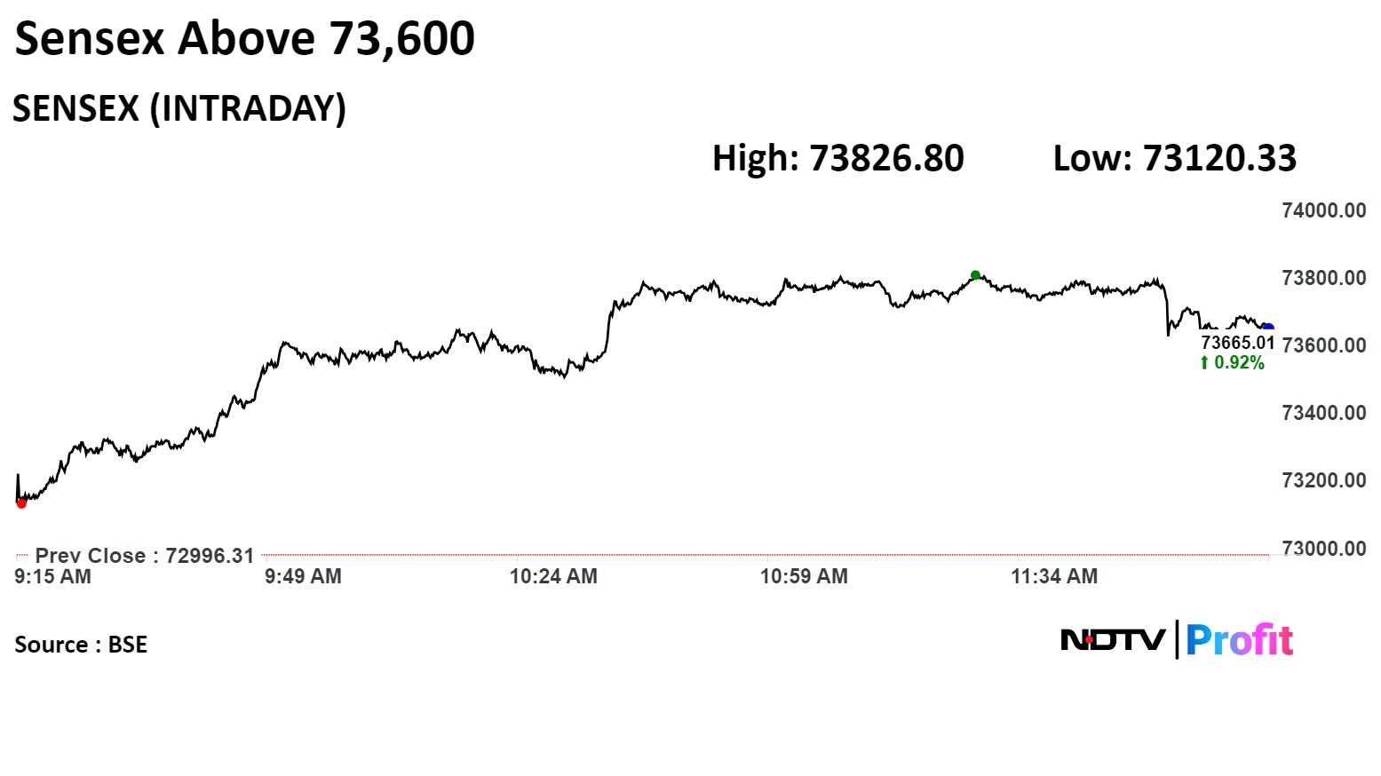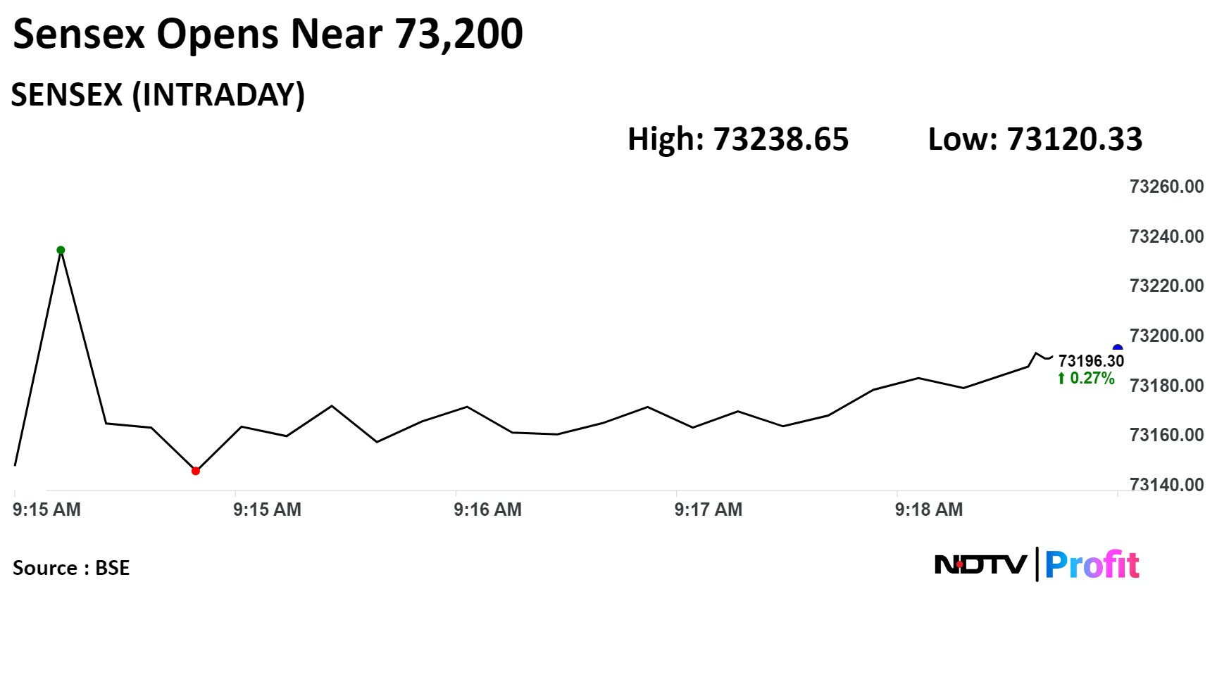 At pre-open, the S&P BSE Sensex Index was up 153.03 points or 0.21 %, at 73,149.34 while the NSE Nifty 50 was 39.95 points or 0.18% higher at 22,163.60.