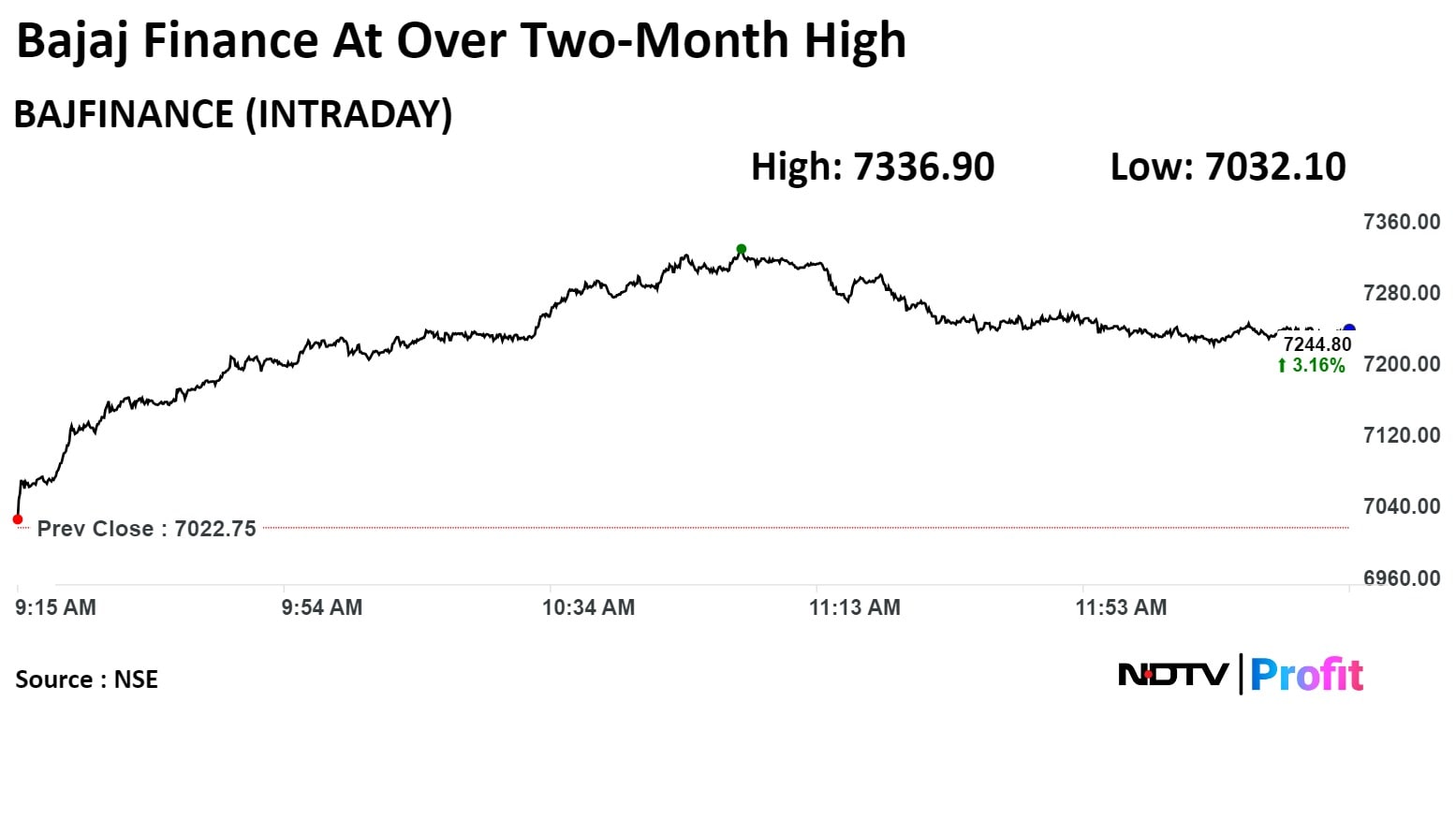 Bajaj Finance Ltd. surged to over two-month high on NSE as its arm is likely planning an initial public offering. The company is said to be seeking valuation of $10 billion. However nothing is finalised yet as discussion is in nascent stage.