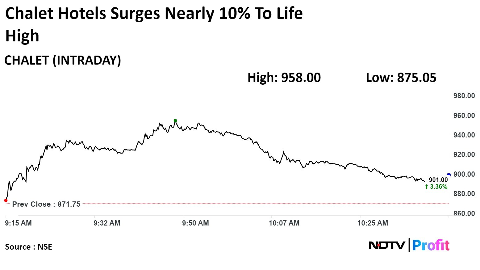 Shares of Chalet Hotels Ltd. rose to record high on last trading session of current financial year as it opened its qualified institutional placement to raise funds.