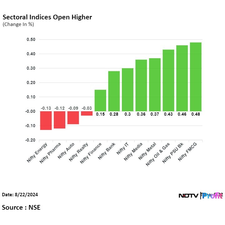 At pre-open, the Nifty 50 was at 24863.40, up by 0.38% or 93.20 points and the Sensex rose 0.37% or 301.79 points to 81207.09.