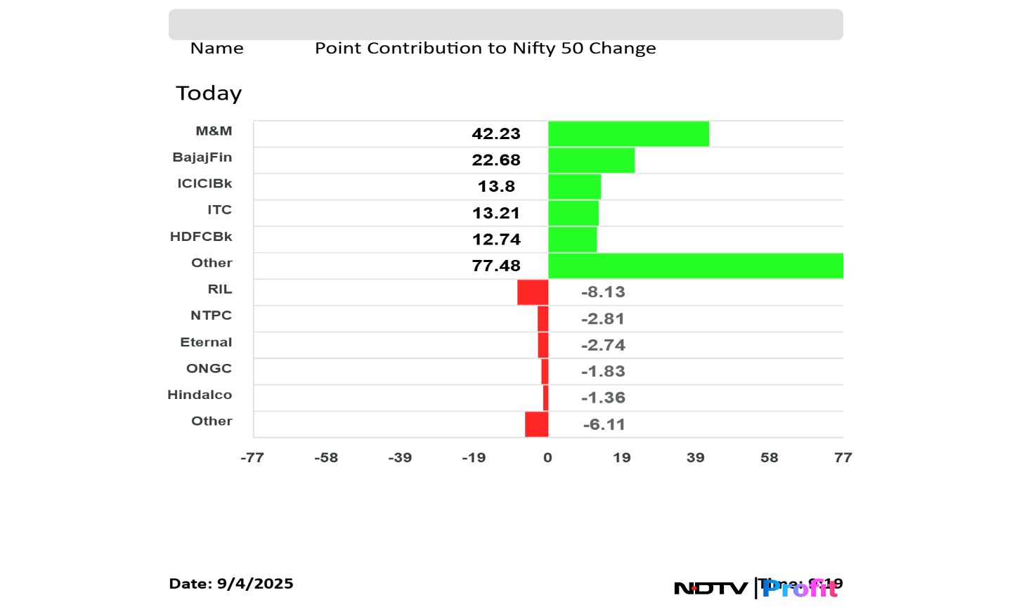 Mahindra & Mahindra Ltd., HDFC Bank Ltd. and ICICI Bank Ltd. were the top points contributor to the Nifty.