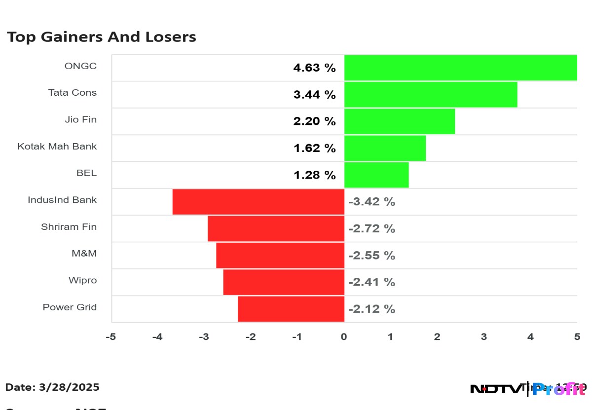 Sensex, Nifty 50 gained near market close on Thursday. March 28 marks the last trading session for the financial year 2025. Nifty 50 was trading 0.04% at 23,600 and Sensex was 0.07% higher at 77,659.