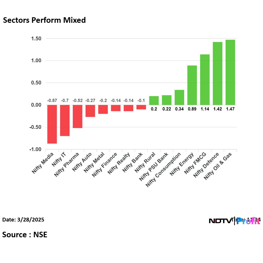 On last trading session of March, sectoral index showcased mixed performance as eight sectors declined and seven surged.
