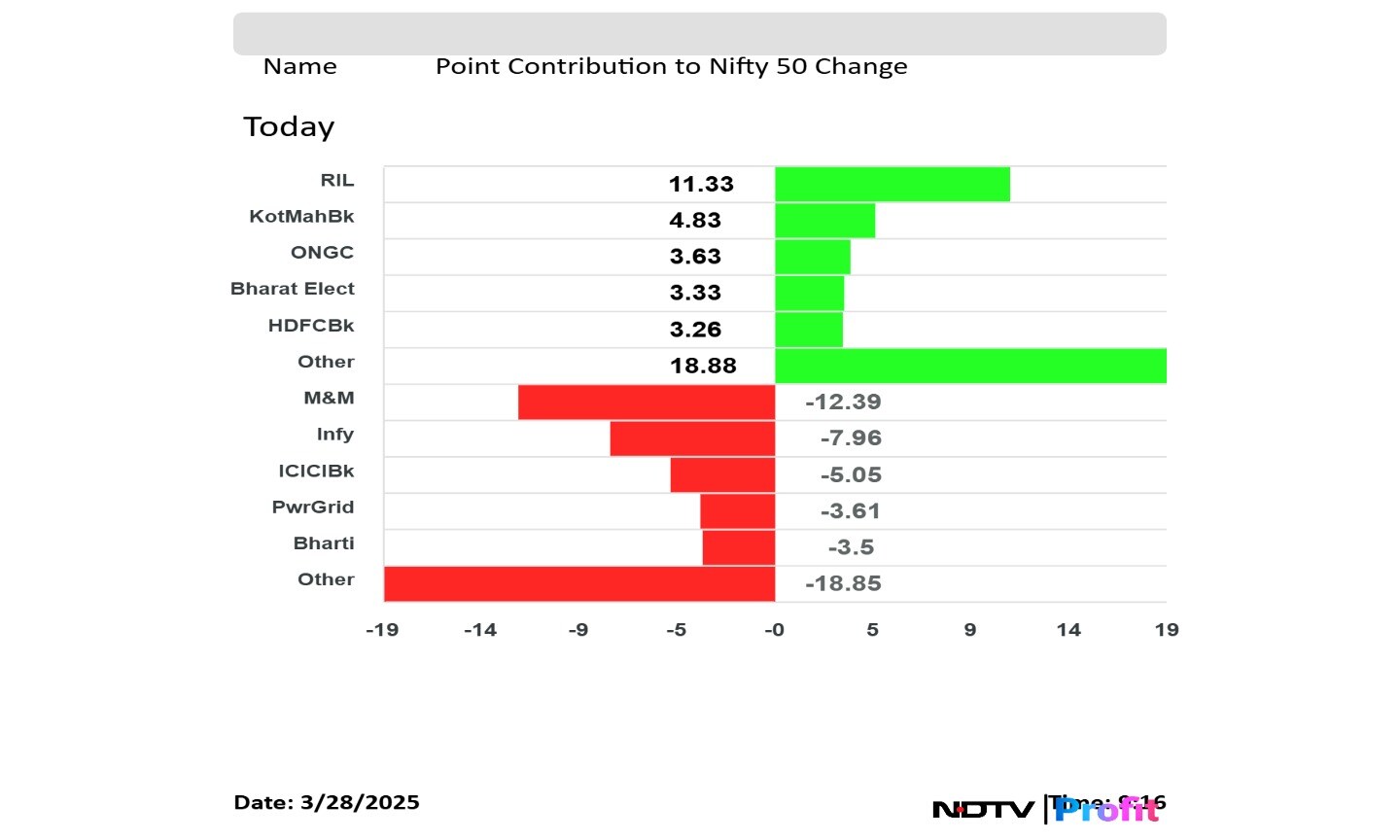 In Nifty point contribution Mahindra and Mahindra, Infosys and ICICI Bank were the top laggards.