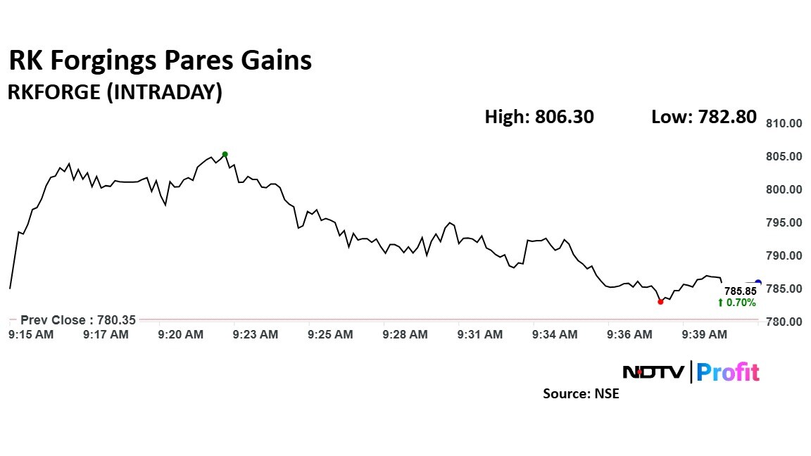 Ramkrishna Forgings' share price surged 3.33% after it commenced operations at its new manufacturing facility, which boasts a capacity of 14,250 metric tons.