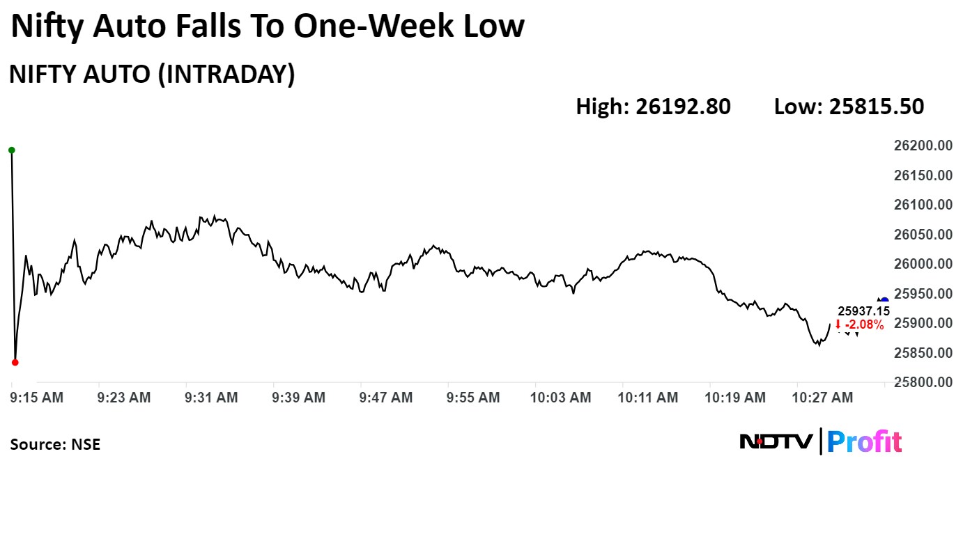 The NSE Nifty Auto index fell to one-week low of 25,688.95