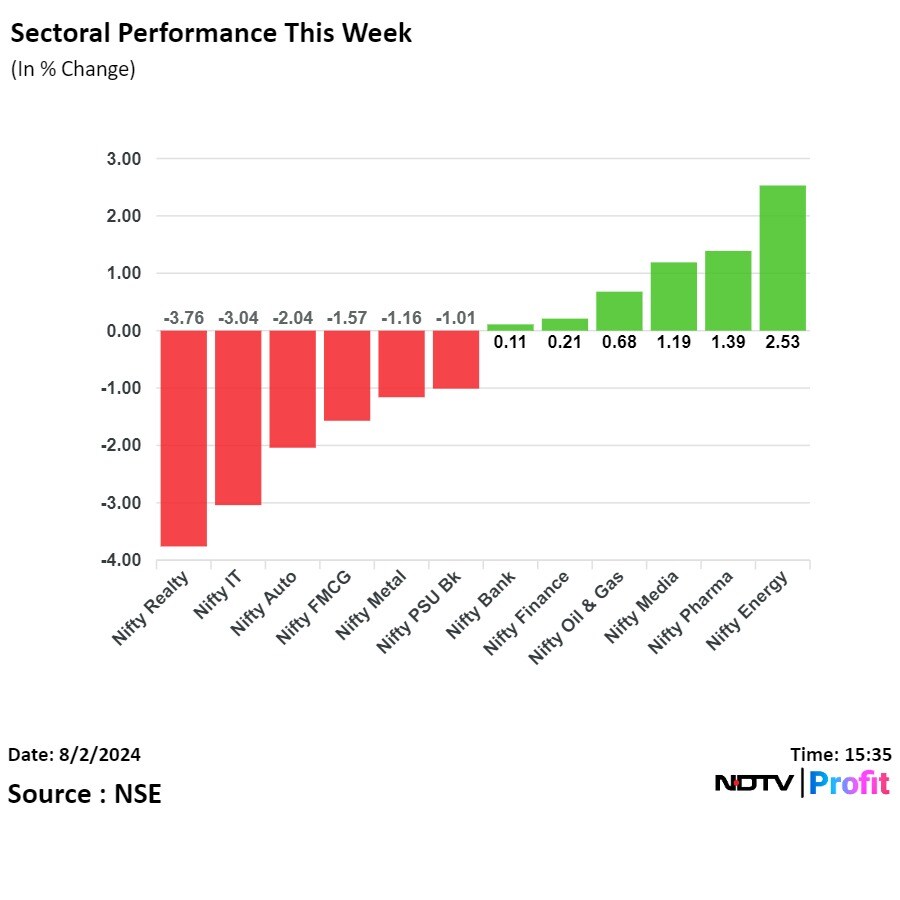 This week, the NSE Nifty Realty and Nifty declined the most, while the NSE Nifty Energy rose the most