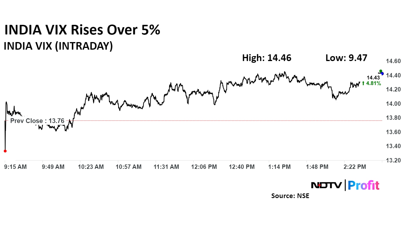 • The India NSE Volatility Index rose 5.14% to 14.47, the highest level since Oct 19. It closed 4.21% higher at 14.34.