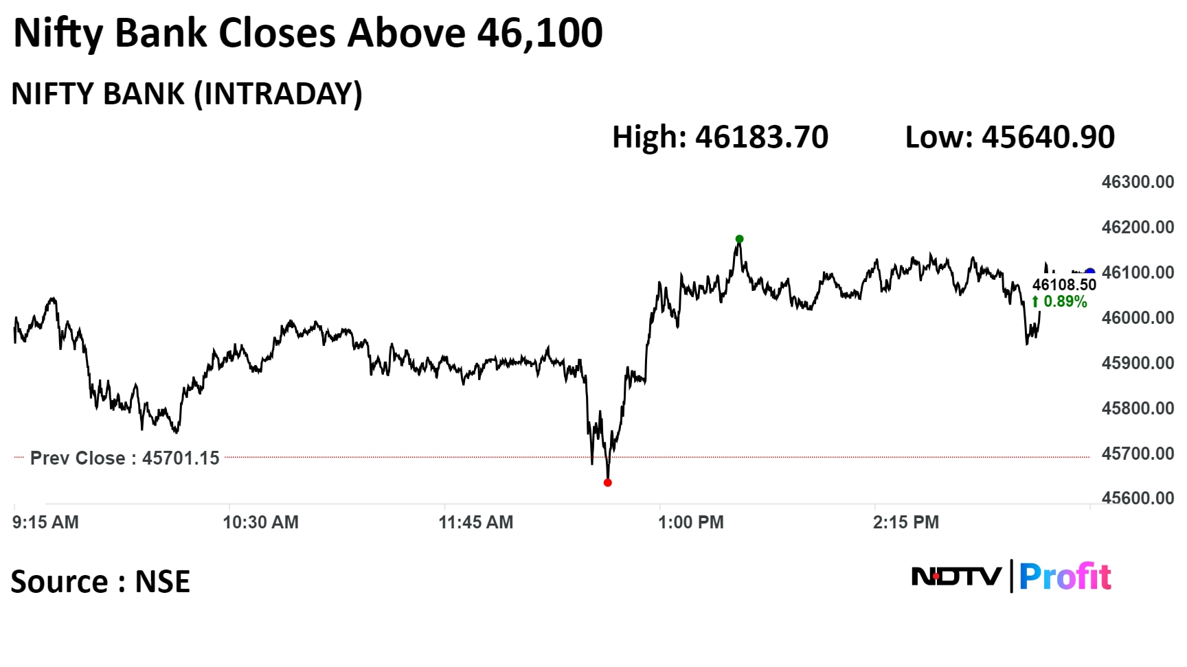Nifty Bank January futures down by 0.06% to 45,797.20 at a premium of 96.05 points.