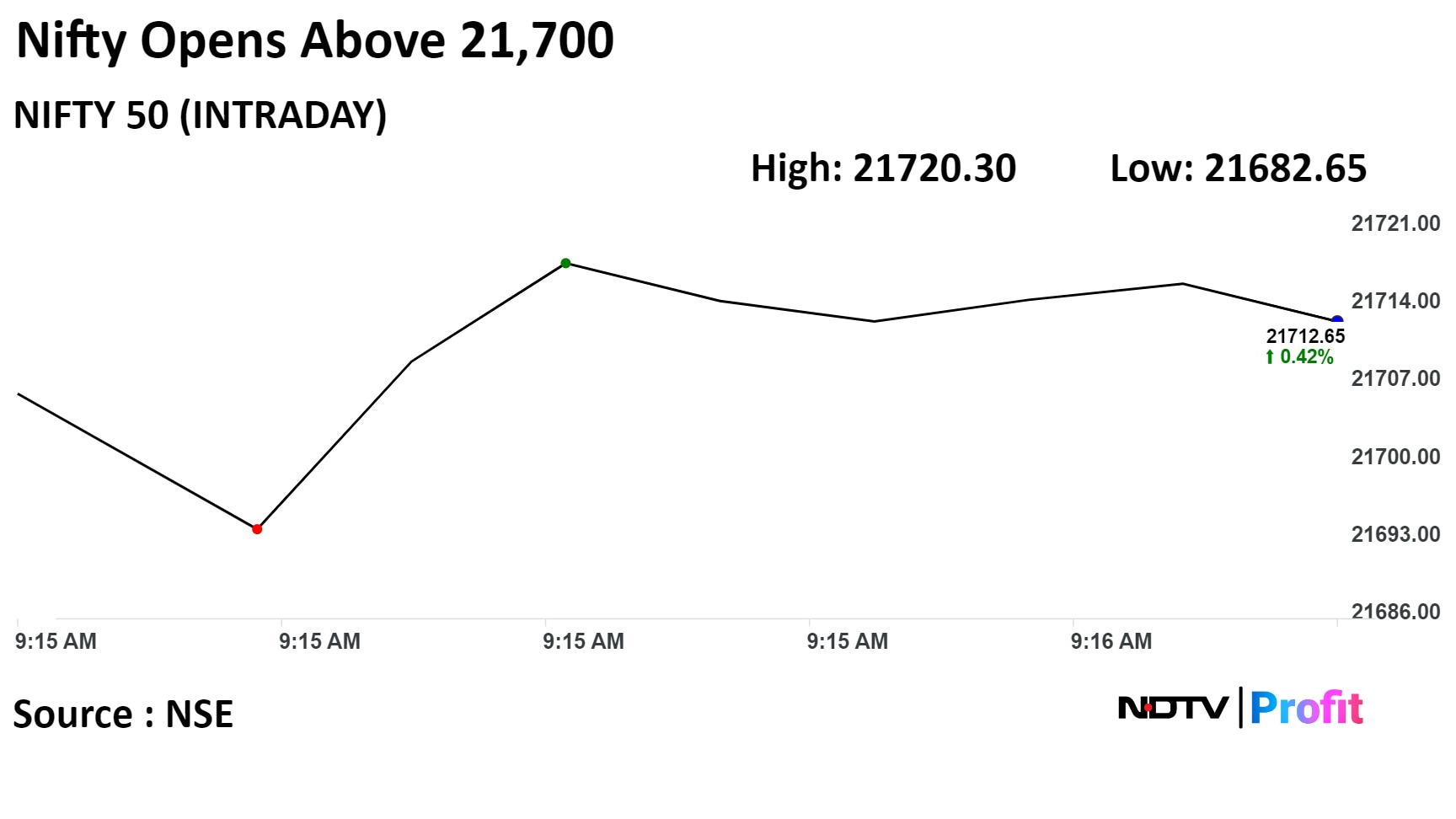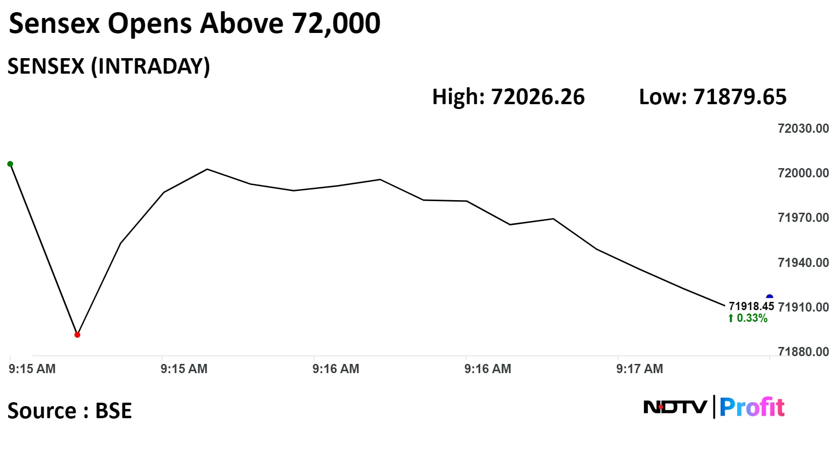 Intraday, the Sensex rose to 72,026.26, while the Nifty 50 touched a high of 21,720.30.