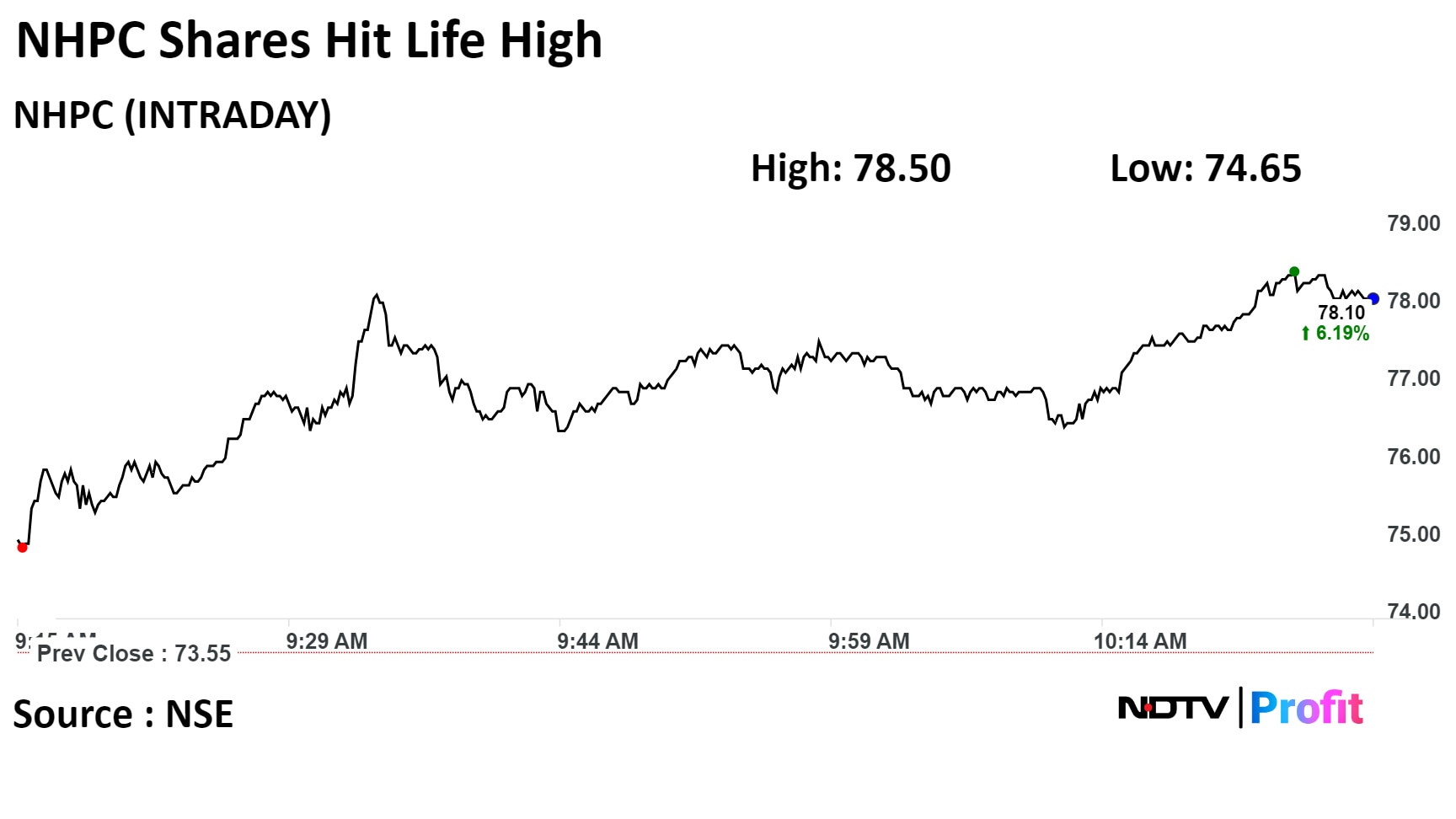 The scrip rose as much as 6.73% to Rs78.50 piece, the highest level. It pared gains to trade 6.25% higher at Rs 78.15 apiece, as of 10:35 a.m. This compares to a 0.24% advance in the NSE Nifty 50 Index.