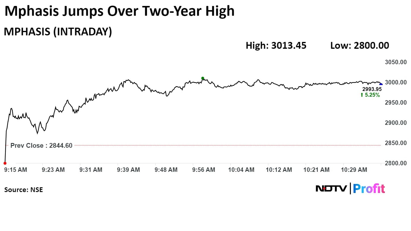 Shares of One 97 Communication Ltd. hit a 10% upper circuit and rose to Rs 505.05 apiece, the highest level since Feb 8. It remained locked in the upper circuit as of 2:46 p.m. This compares to a 1.64% advance in the NSE Nifty 50 Index.