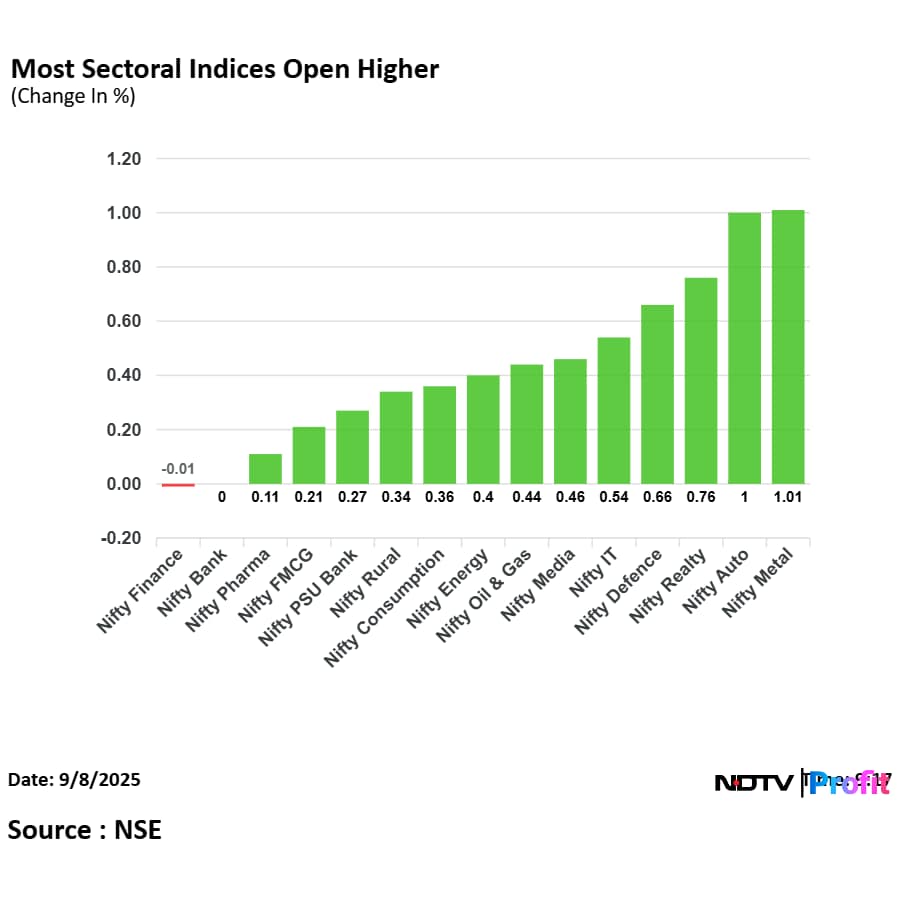 The NSE Nifty 50 and BSE Sensex opened higher as Mahindra & Mahindra Ltd. and Tata Steel Ltd. shares led. The indices were trading 0.22% and 0.23% higher, respectively as of 9:19 a.m.