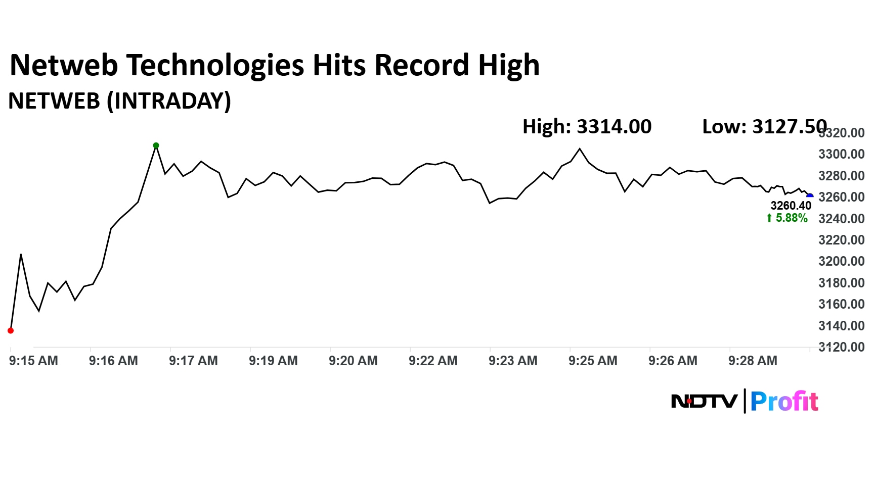 Netweb Technologies India share price rose 7.62% to a fresh high of Rs 3,314 apiece.